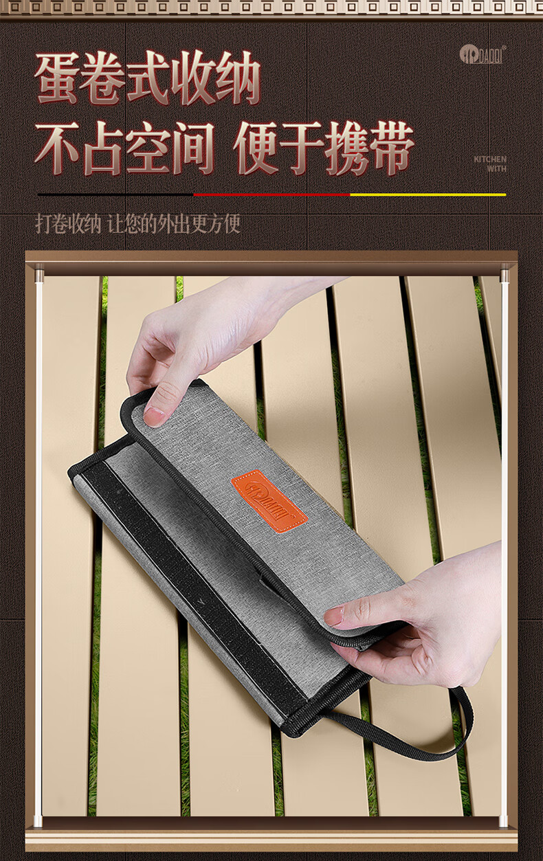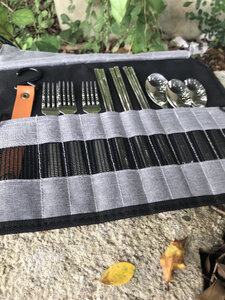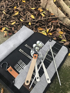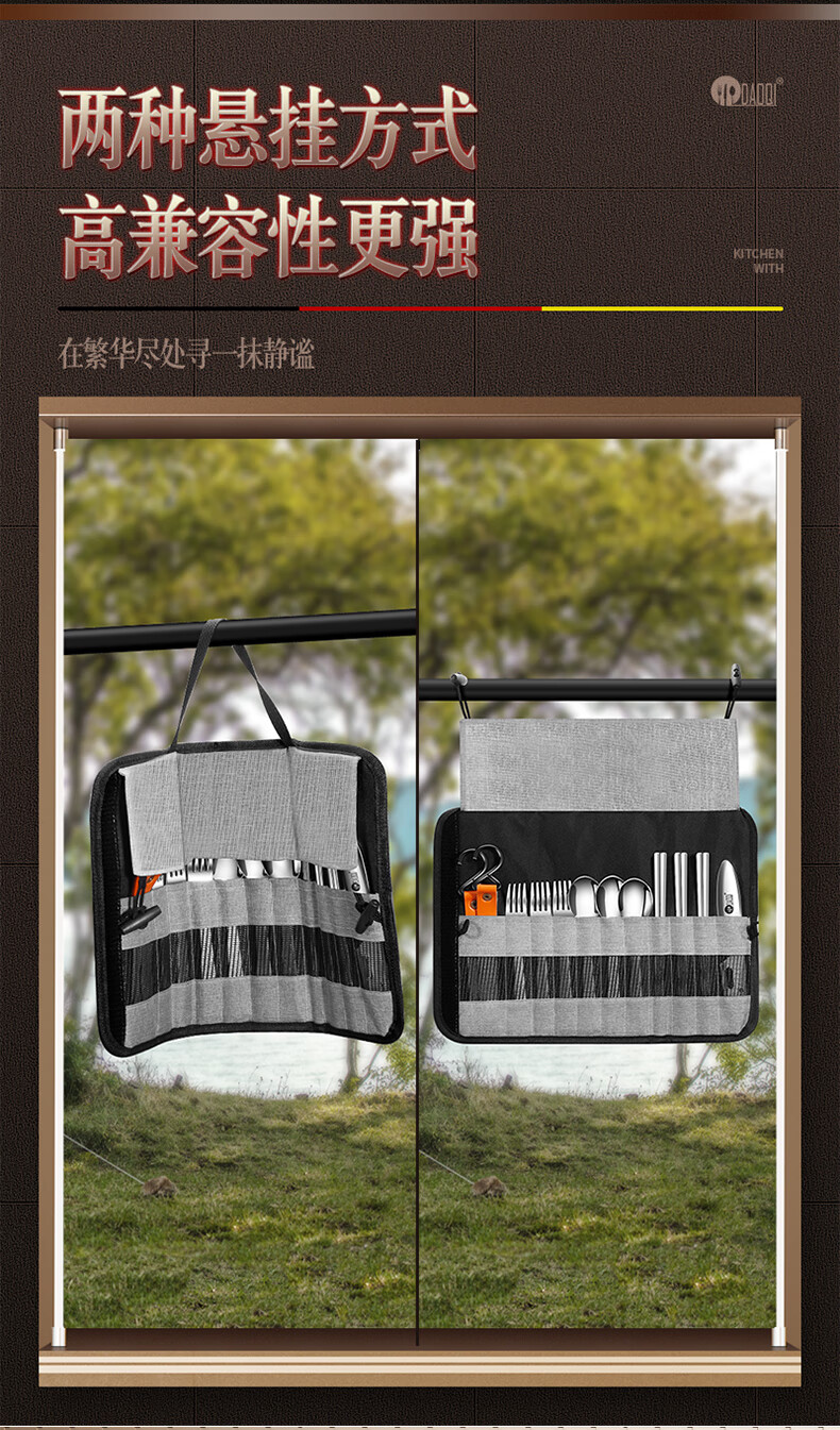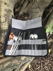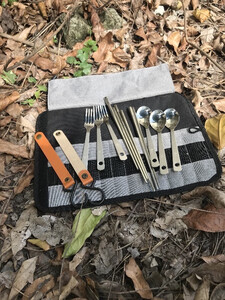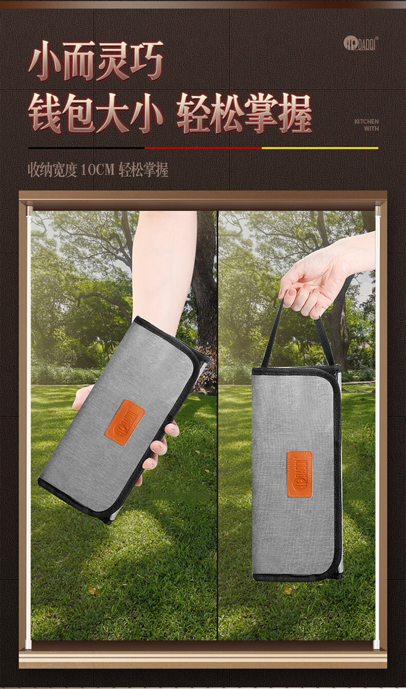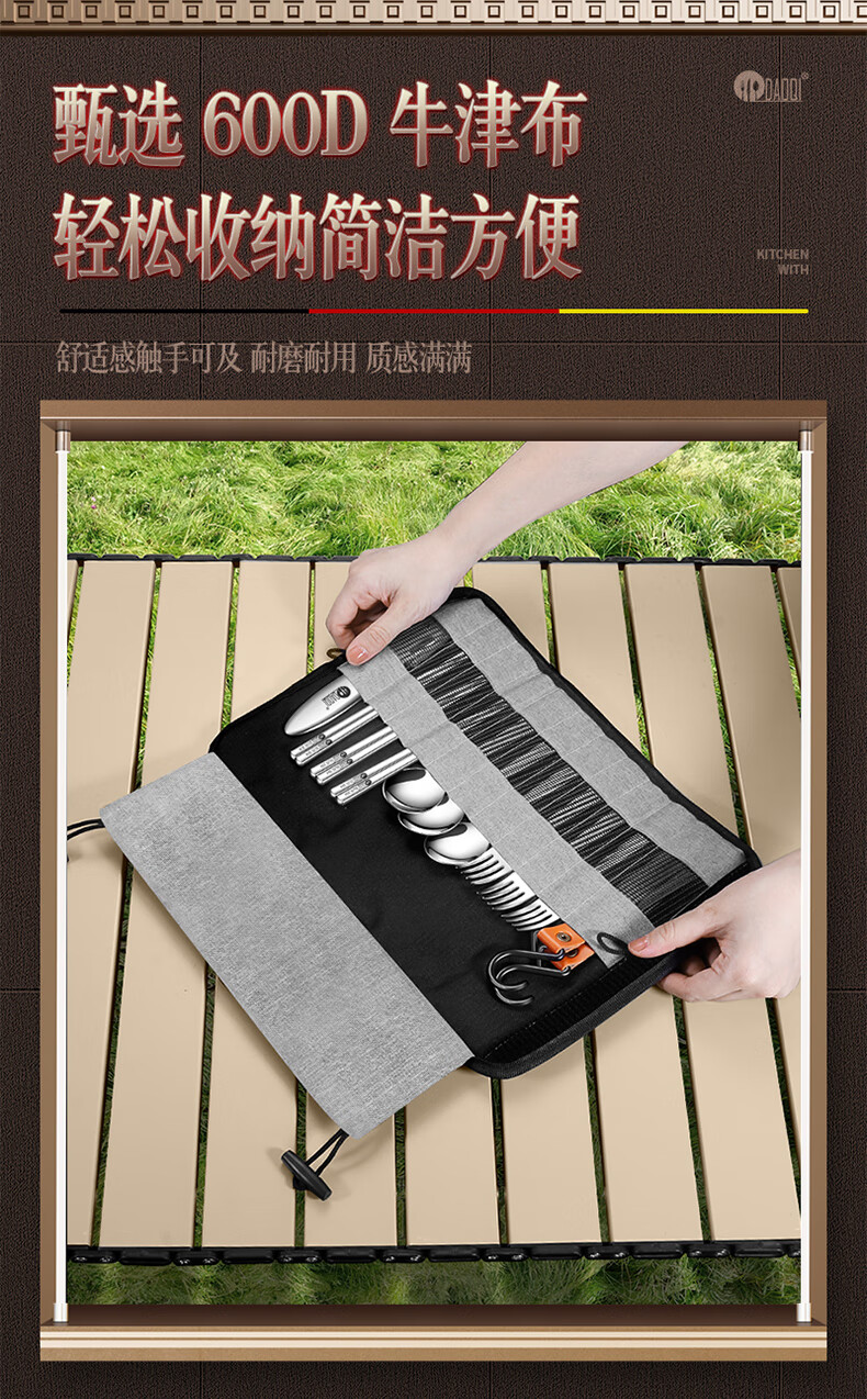 岛奇户外餐具收纳包露营野炊便携式打卷3人组合304不锈钢勺子叉子 【十一件套】户外手包便携餐具