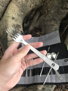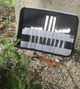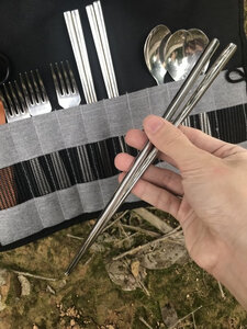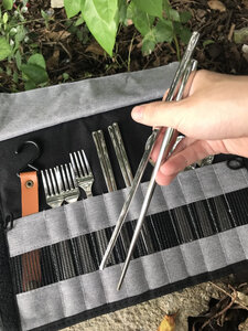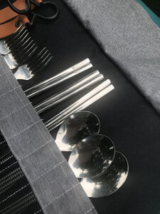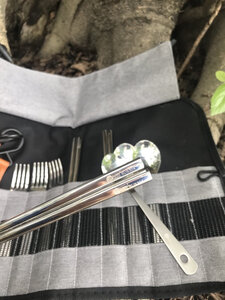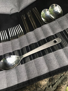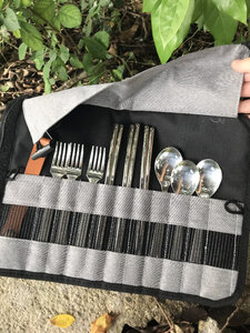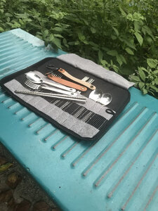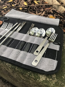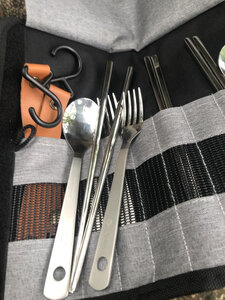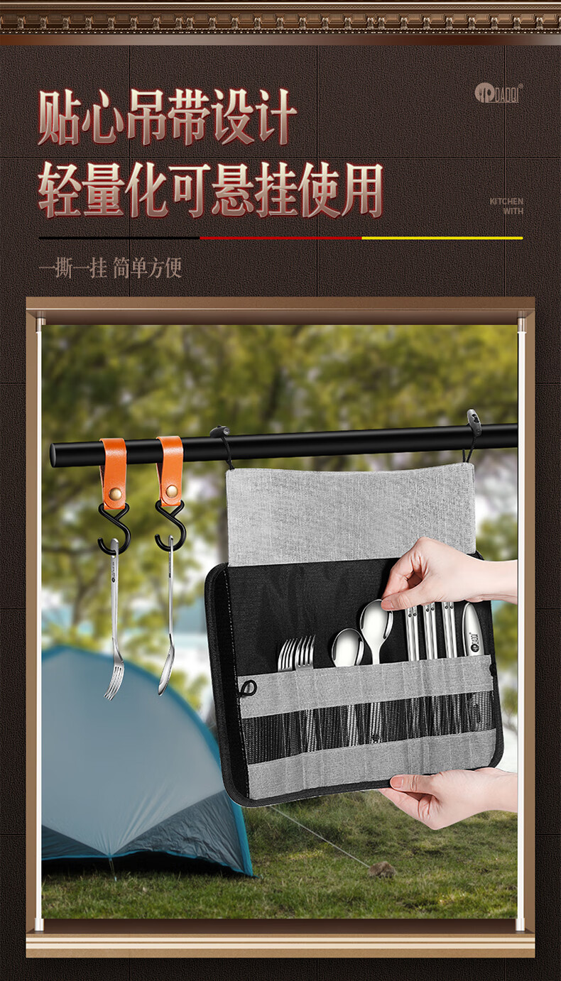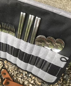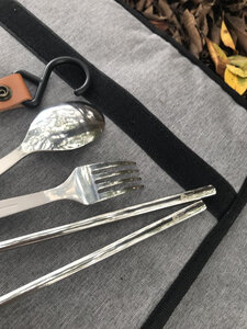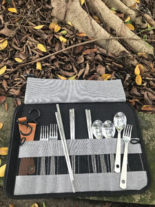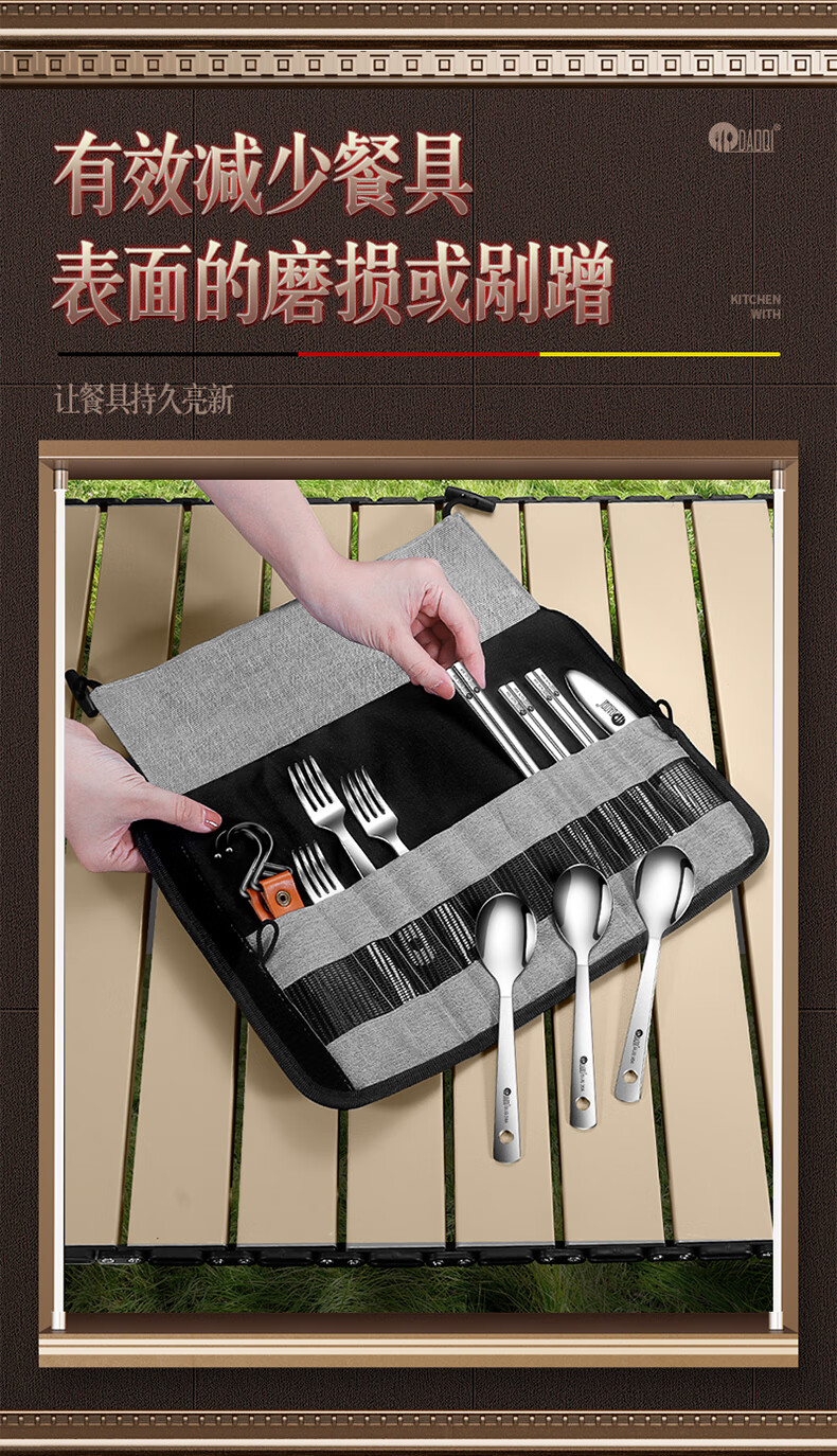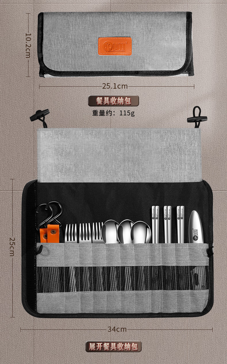 颜色很好看,牛津布料结实好用,露营的筷子和不锈钢餐具全都能装进去,不用每次凌乱的找来找去了,餐具还是食品级不锈钢的,很不错