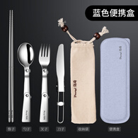 岛奇304不锈钢户外露营便携式旅行折叠筷勺叉筷子套装旅游野餐 304叉勺筷切+袋子+盒子【蓝】