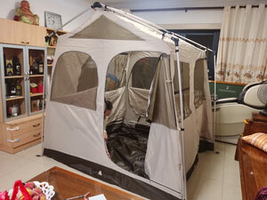 容纳人数:很满意的一款帐篷,一家四口,很宽敞。 透气效果:绝佳的设计,四面八方的窗口,防蚊虫防水也很到位。 防水效果:外帐防水性很好,雪群很赞,放水回流渗透到内帐也很有效果。 展开类型:一室一厅加两个侧面小仓库,更美观也很好用。 便携性能:收纳后也不占多少空间,搭建也还算方便。 适用场景:搬家式露营的绝佳帐篷,美观,好用,空间超大。