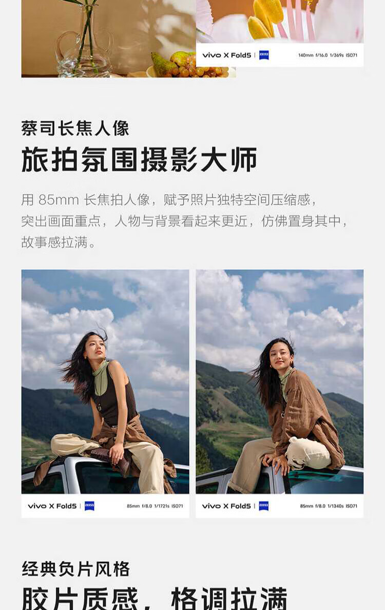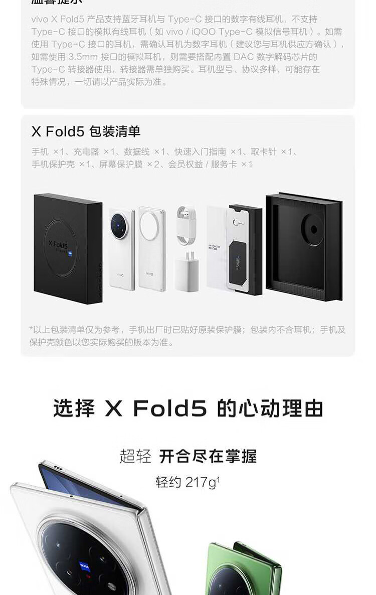 vivoX Fold5 新品折叠屏5G手机旗舰大屏商务长续航6000mAh第三代骁龙8闪充5000万像素 钛度 12GB 512GB 官方标配