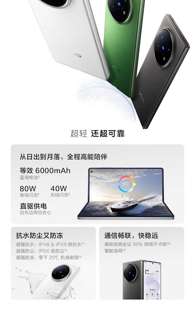 vivo展机XFold5折叠屏手机超轻薄机身XFold3Pro超巨幕折叠屏手机 Fold3 Pro【轻羽白】 16GB+1TB 赠运费险|详情咨询客服