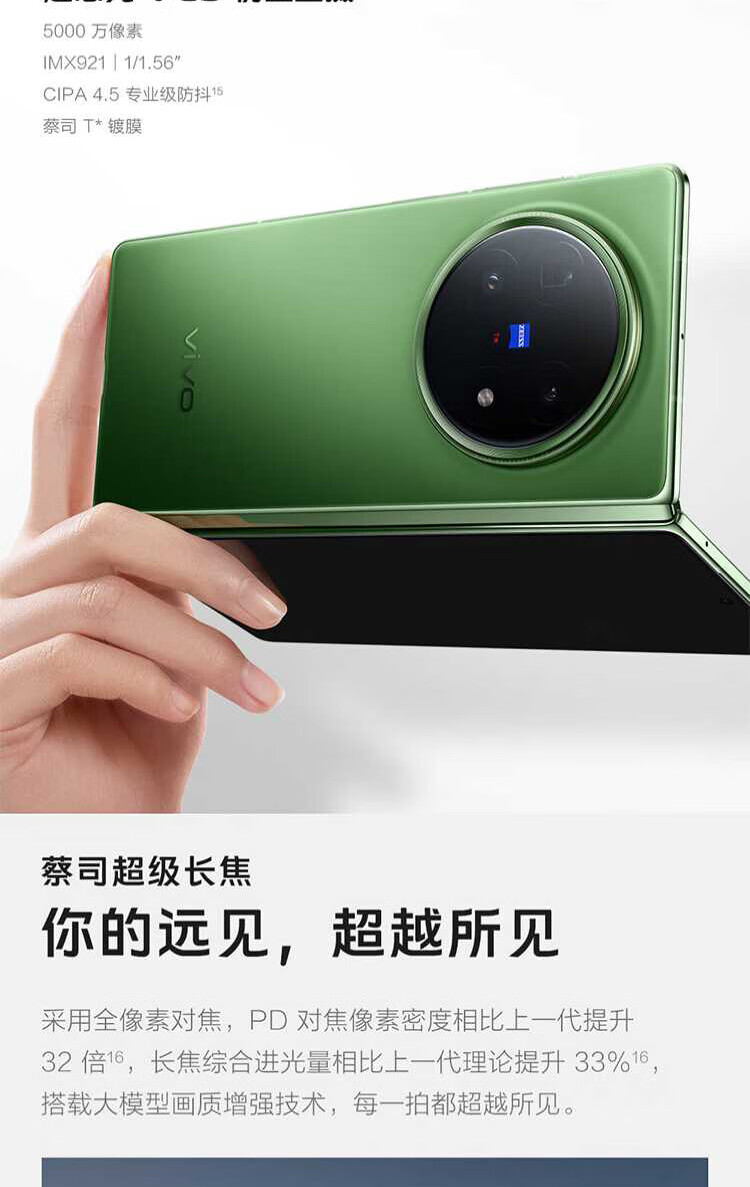 vivoXFold 5 预先激活新品补贴上市6000mAh大电池 轻薄折叠屏5G全网通 青松 16GB+512GB 电子保卡已启用