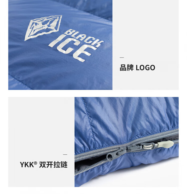 黑冰(BLACKICE)A400/A700/A1000/A1500超轻鸭绒睡袋信封式单人露营户外可拼接 黑色 A400(新标准) M码