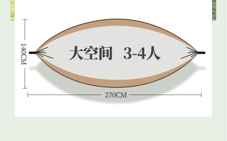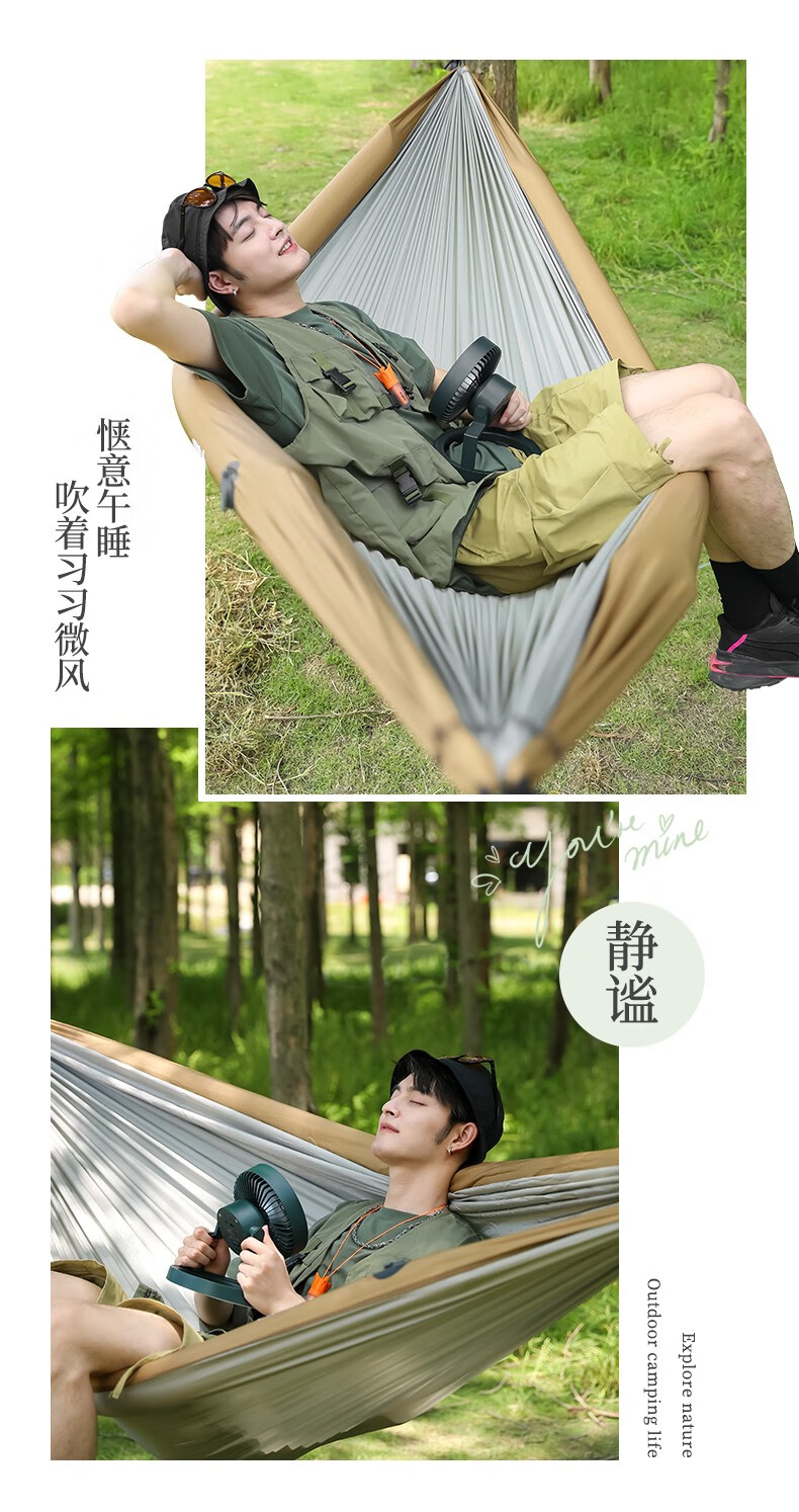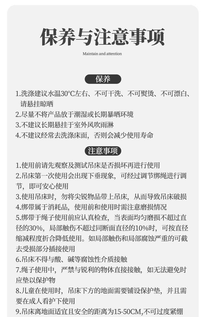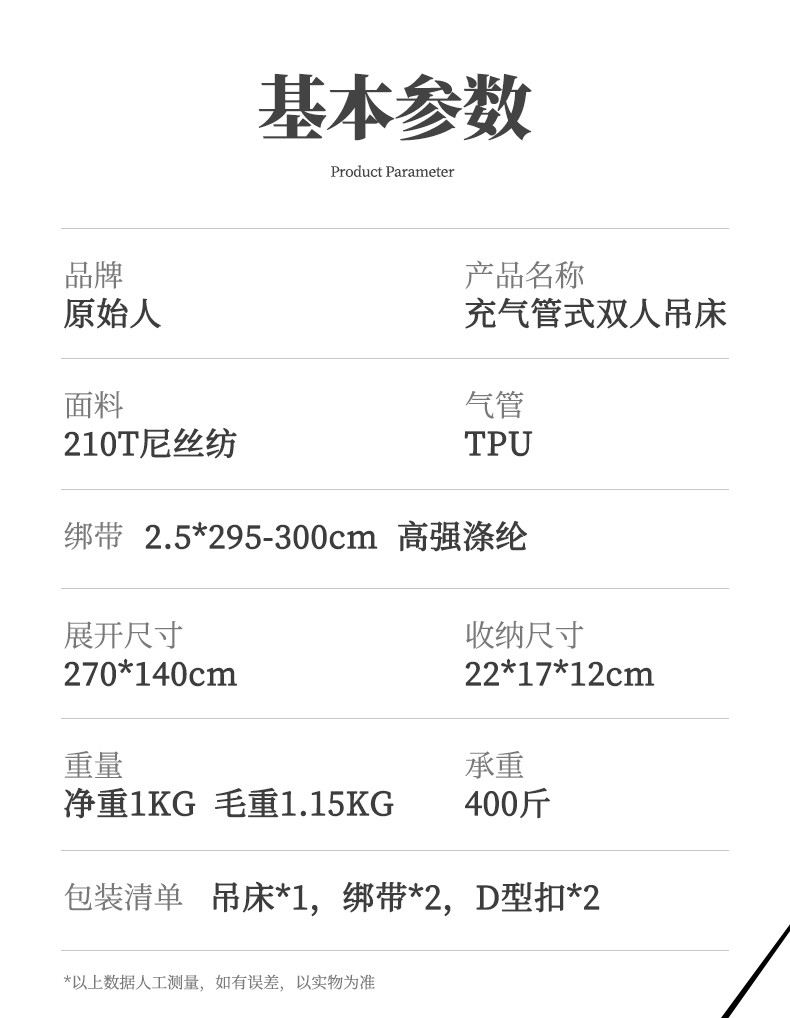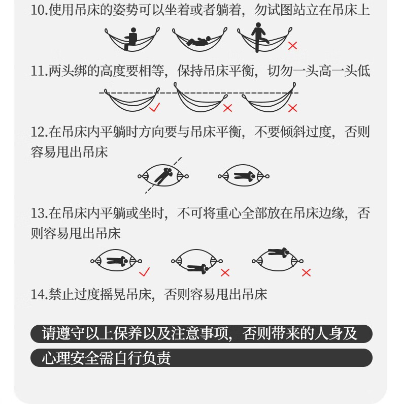 材质好,易收装,在里面不会有那种不透气的感觉,收纳袋里面还有很贴心的教你按装的说明书,吊床两边的气囊3口气就能吹满,很喜欢