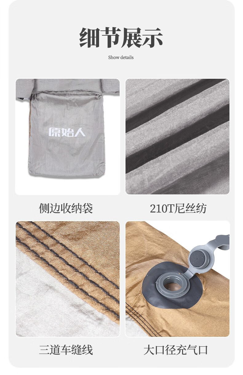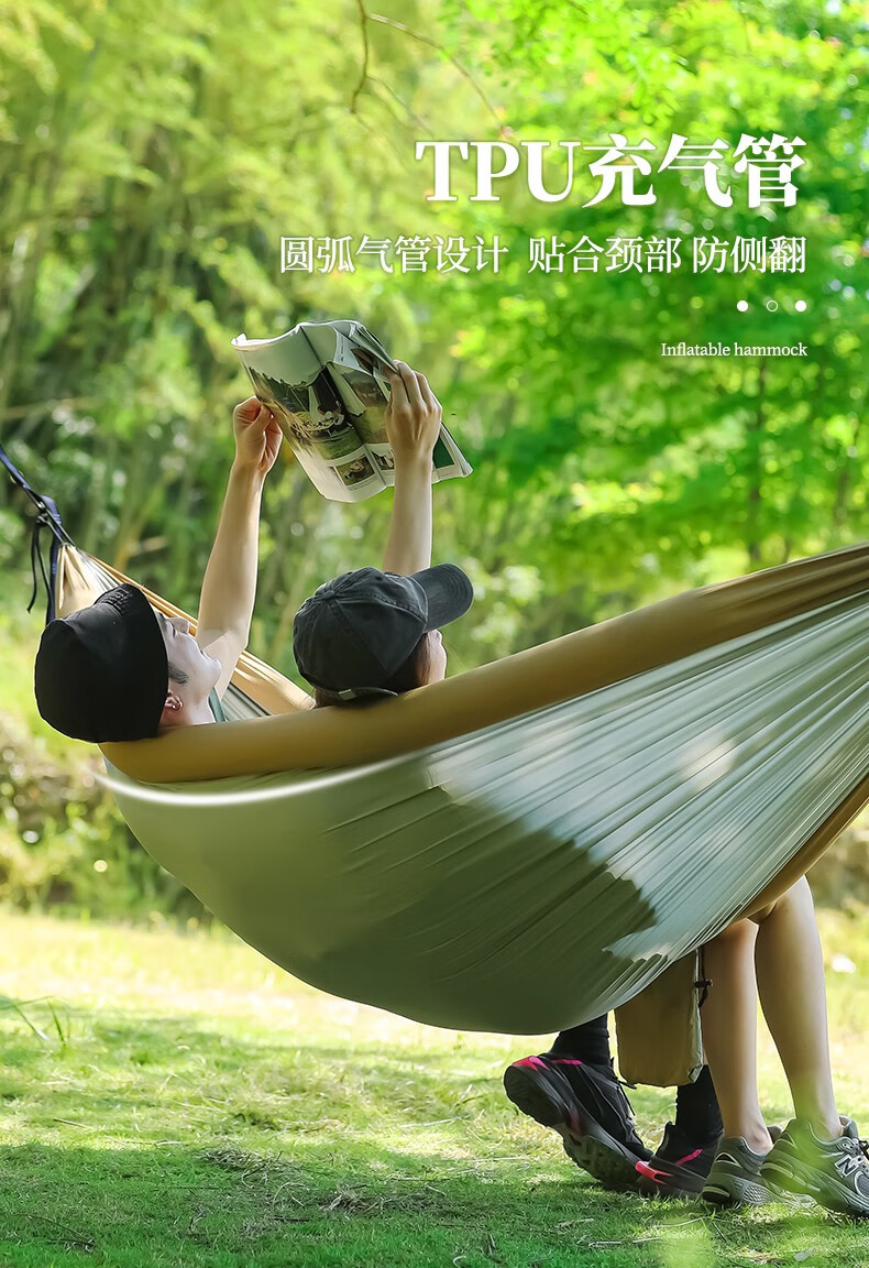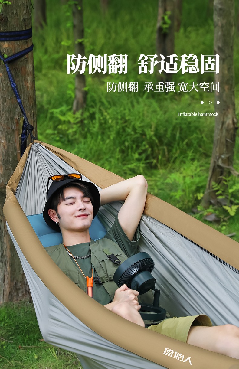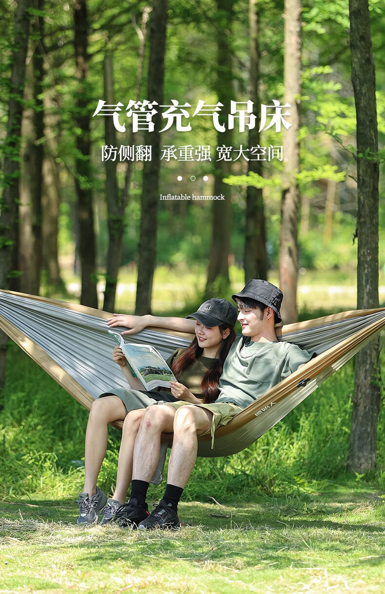 原始人充气吊床户外防侧翻秋千摇床家用宿舍野营野外露营便携成人儿童 (咖啡色+灰色)拼色