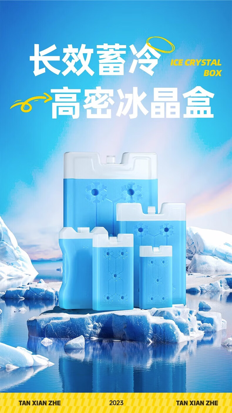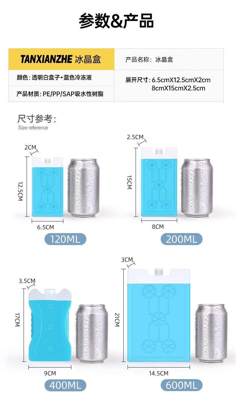 探险者户外冰晶盒冰袋家用野餐露营商用摆摊保冷保鲜冰板冰砖冰盒冰袋 400ml冰晶盒【可重复使用】