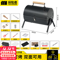 探险者烧烤炉户外碳烤炉家用煎烤两用一体烧烤带烤盘露营便携式炉子 烤漆黑【双烤网+烤盘】13件套