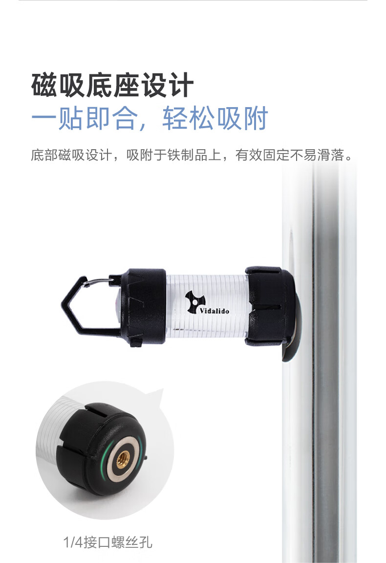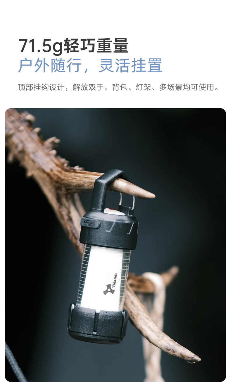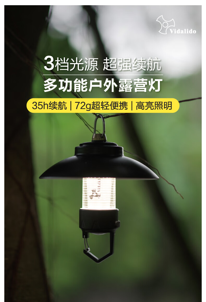 维达利多的这一款露营灯很适合拿来当氛围灯使用,到了晚上,露营拿出开拍照,会非常的漂亮,另外电池采用的16500电池,续航也非常不错,可以直接充电,很喜欢。