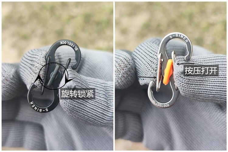 为背包防盗准备的。购买的五个都可以打横顶住。比同时购买的银色8字扣五个里边有三个无法打横顶住要好
