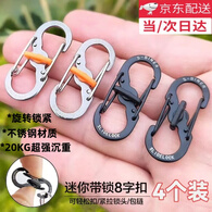 何健弓带锁8字扣不锈钢快挂扣户外背包登山扣拉锁包链扣防盗S形扣钥匙扣 不锈钢带锁8字扣【黑色+银色】4个