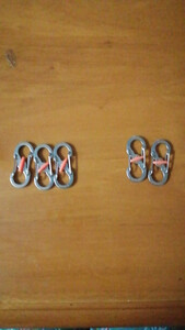 8字锁的材料和做工都不错,但很遗憾五个里边只有两个可以打横顶住,另外三个都不能打横顶不住,失去了8字扣的作用。