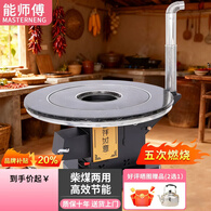 昊燃 【送货上门】加厚气化炉农村家用烤火炉柴煤两用汽化炉节能暖炉 1.2米加厚不锈钢平转桌面+气化炉