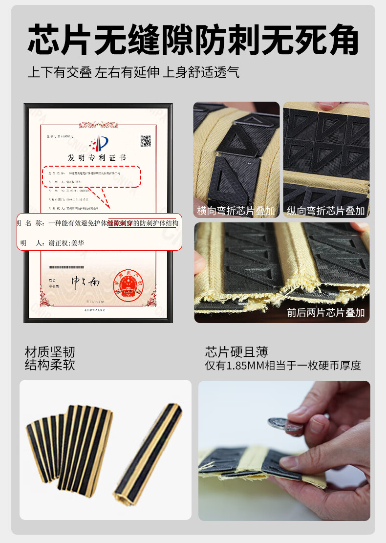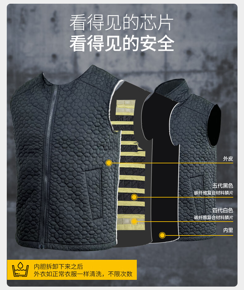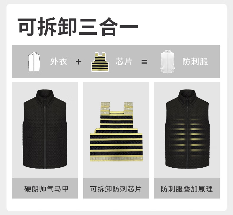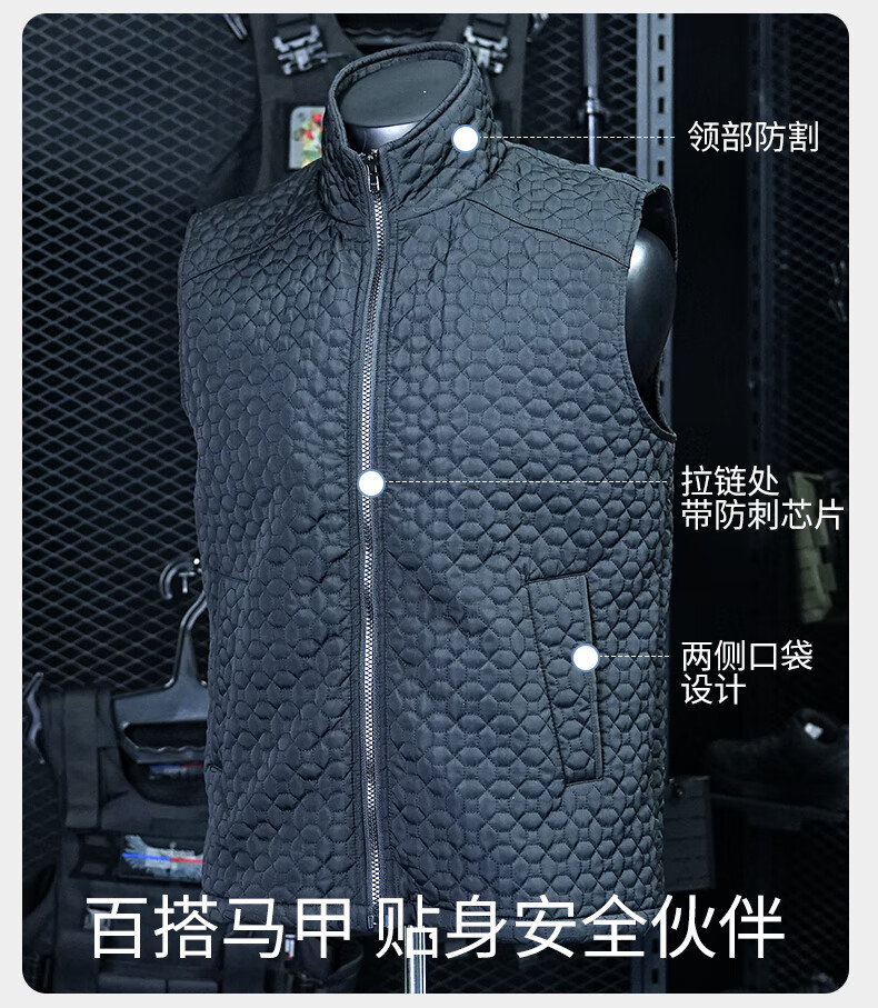 战术兵 防刺服防刺马甲防刺背心软猬甲 商务内穿式隐形防割服 户外防身战术背心 V领 钢制防刺服 均码(腰部可以调节)