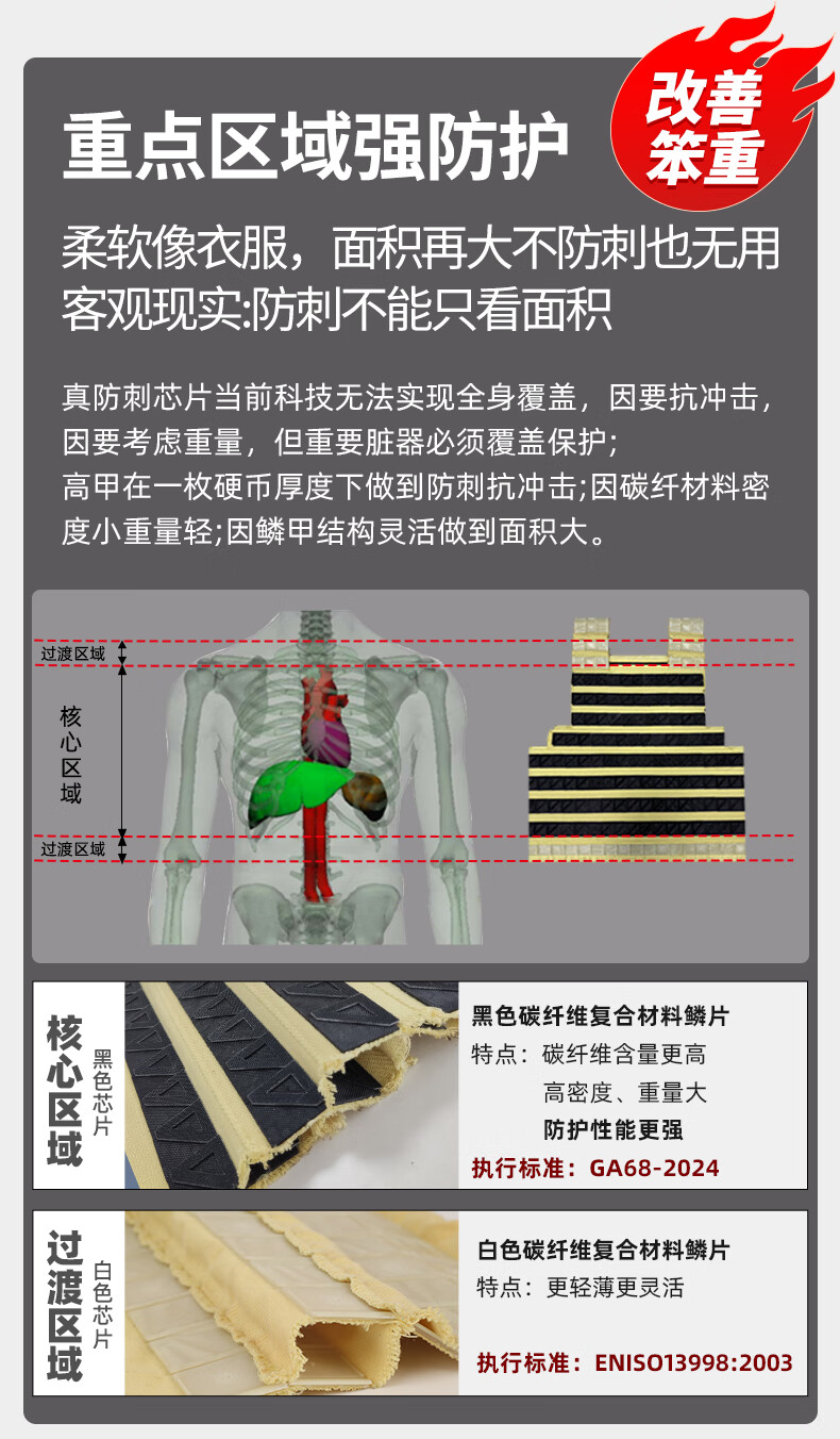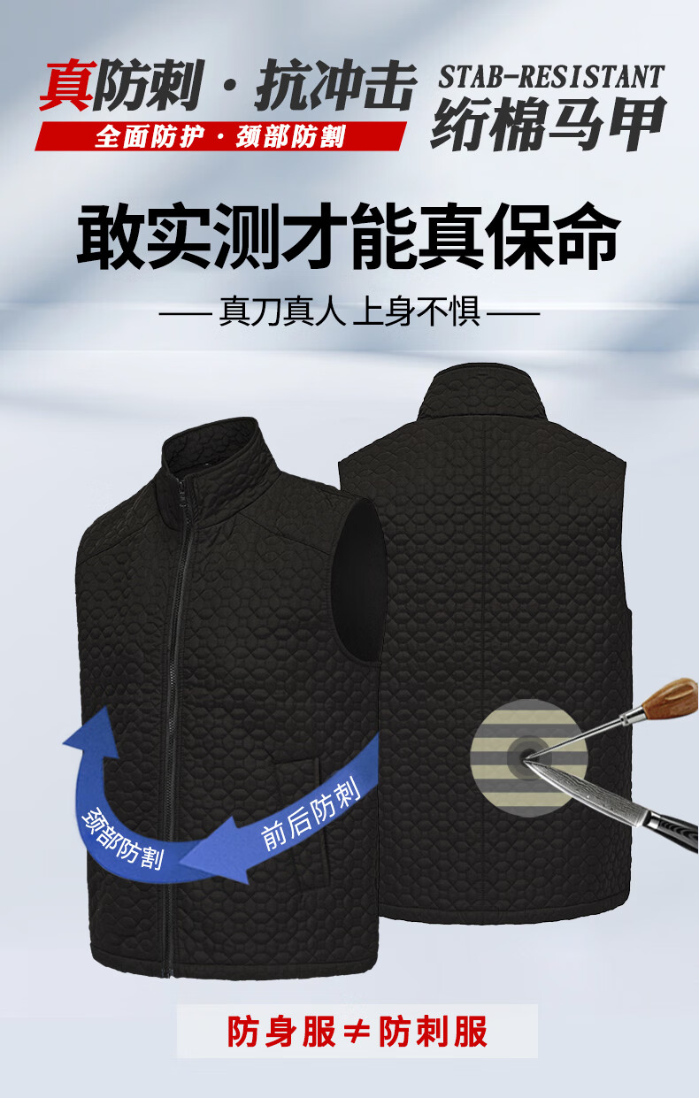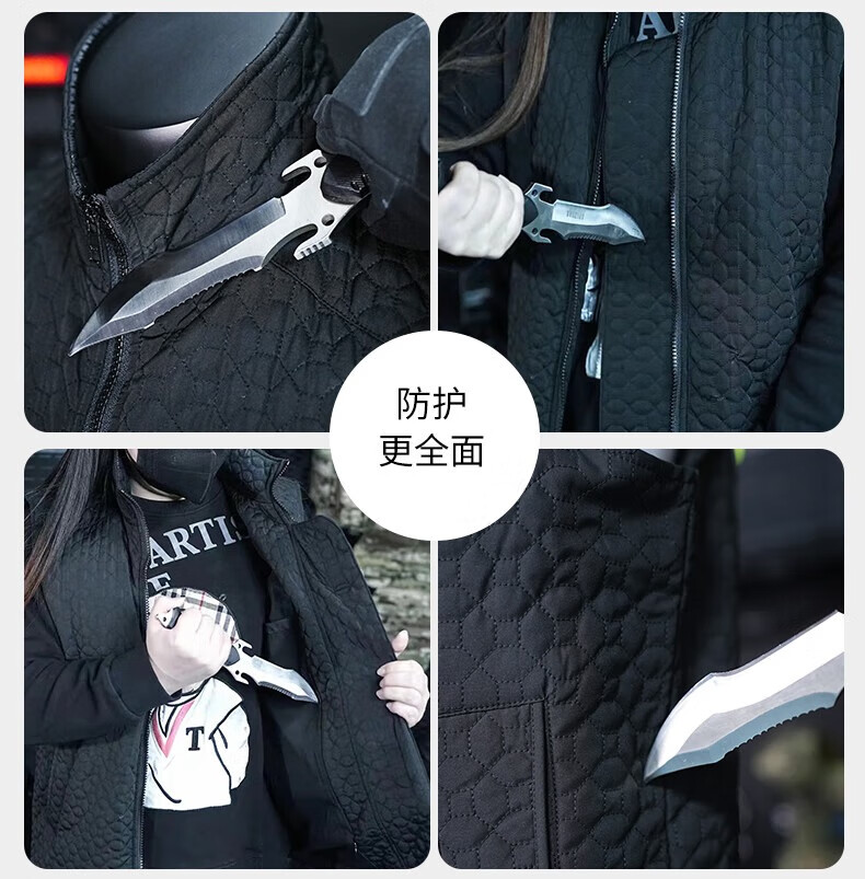 高甲防护柔性防刺服软质防刺衣冲锋外套军迷装备安保户外夹克全身隐形防刀 男款-黑色 XL (178-185cm/80-95kg)