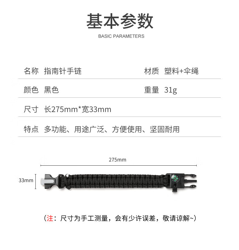 这款手链真的很实用,伞绳材质特别结实,户外活动时戴着很放心。设计低调但细节到位,拆开还能应急用,性价比很高。