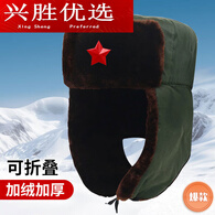 山头林村加厚加绒防寒棉帽男女冬季保暖护耳帽中老年火车头帽