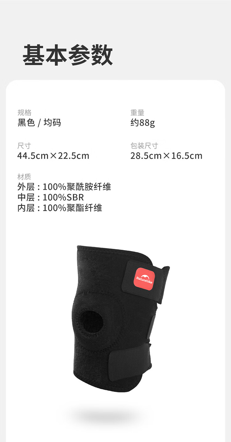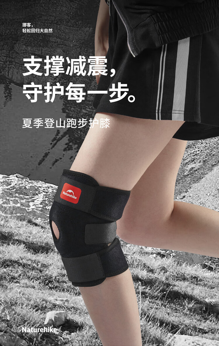Naturehike挪客户外徒步登山护膝关节膝盖保护男女跑步健身骑行爬山运动护具 黑色/单只装