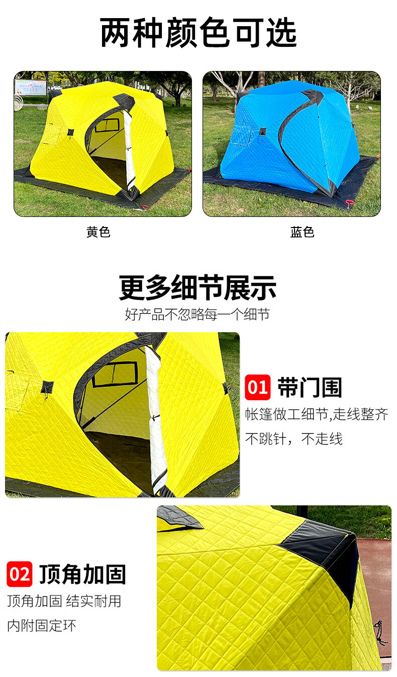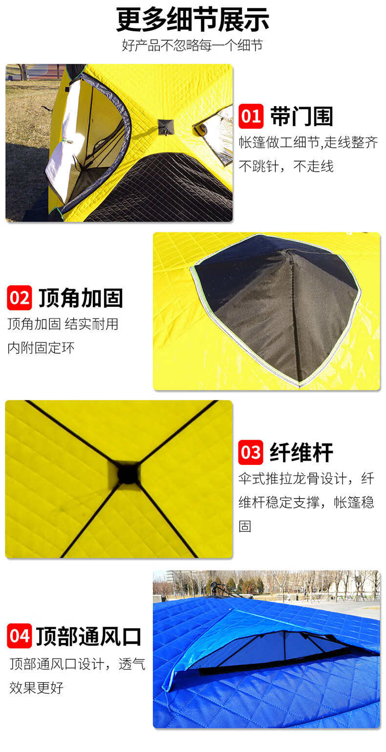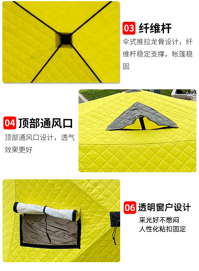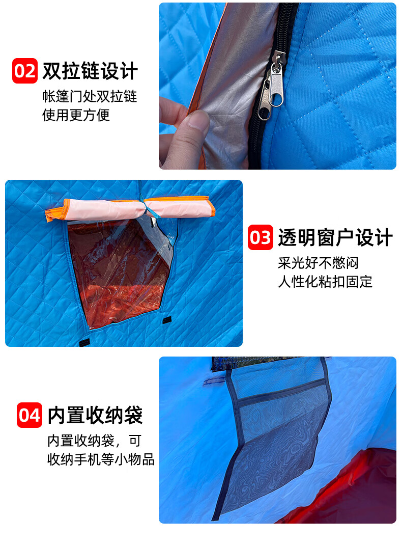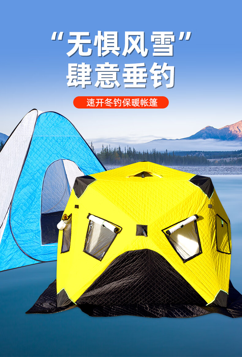 这款帐篷保暖性很好,防风效果也不错,在冰面上用着很安心。收纳方便,空间足够,性价比高。