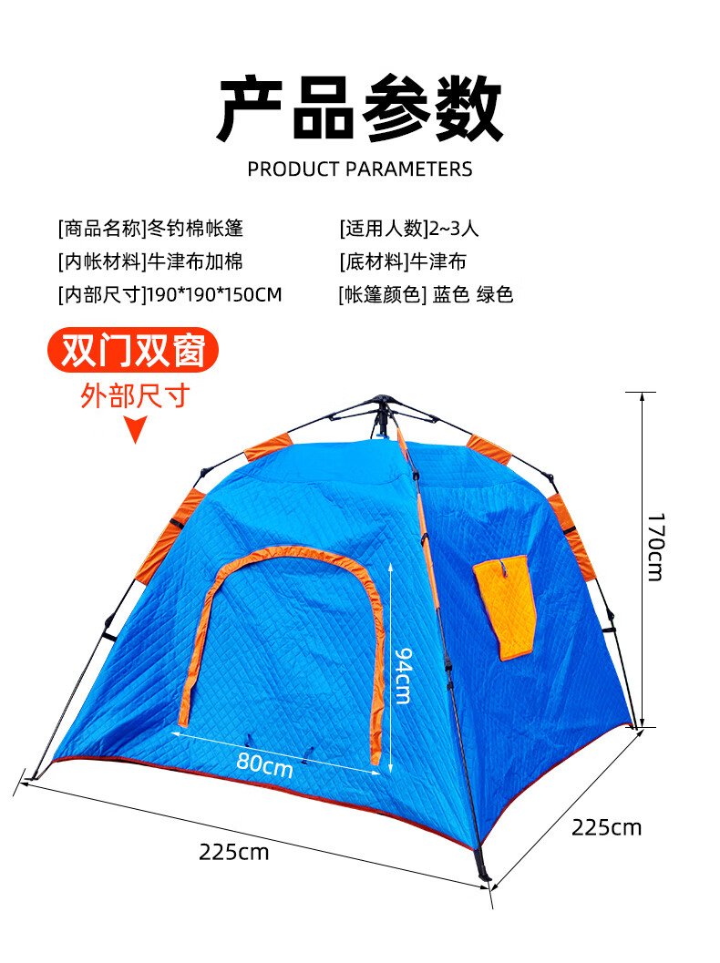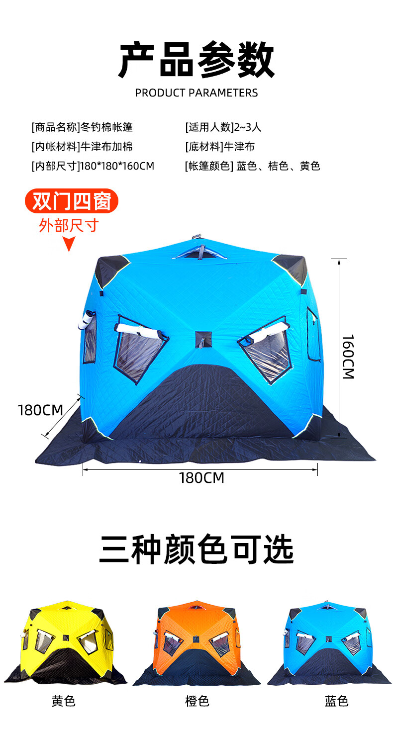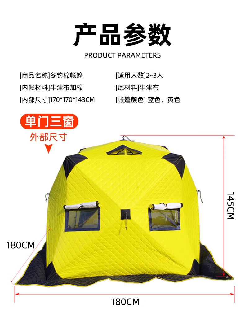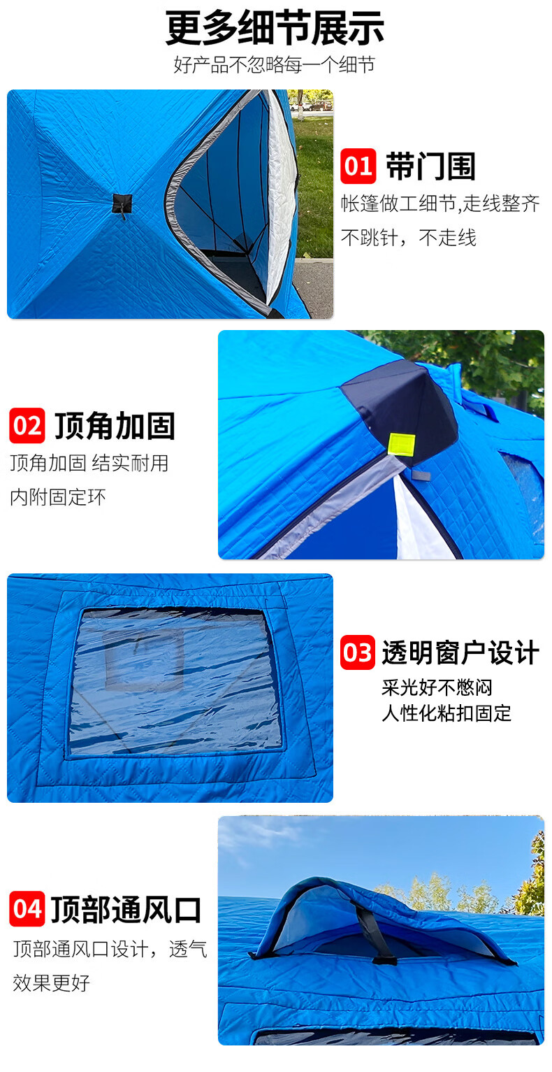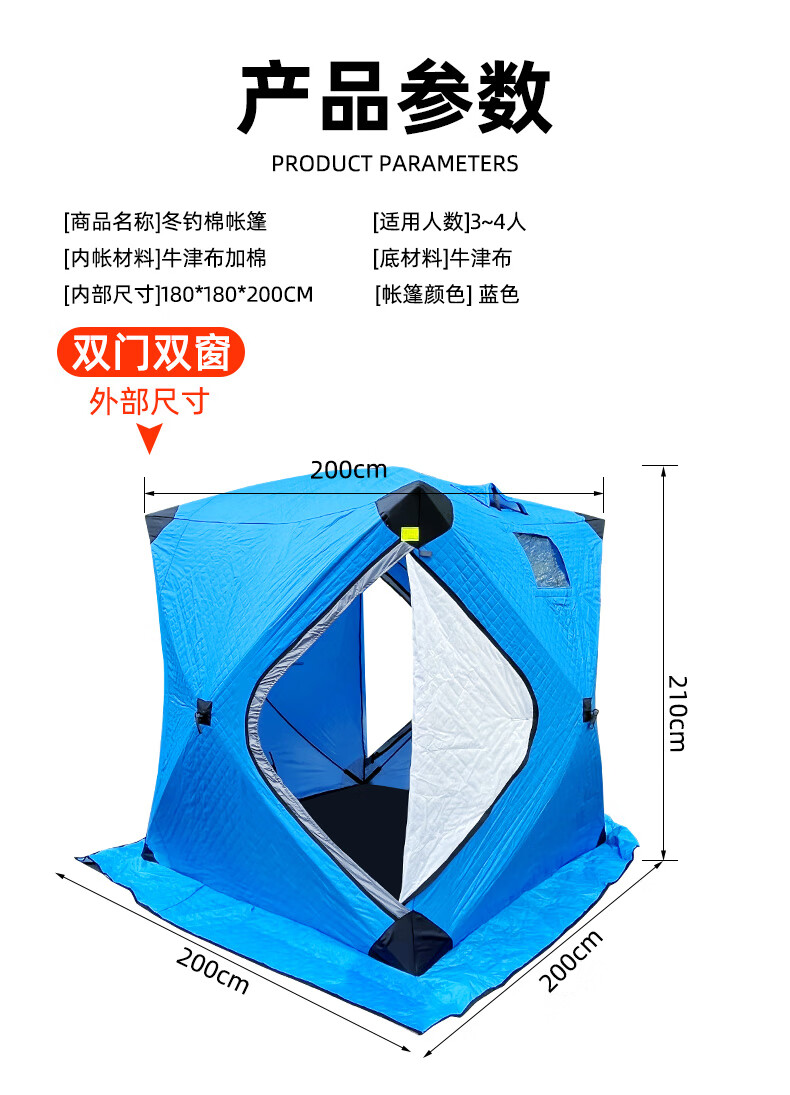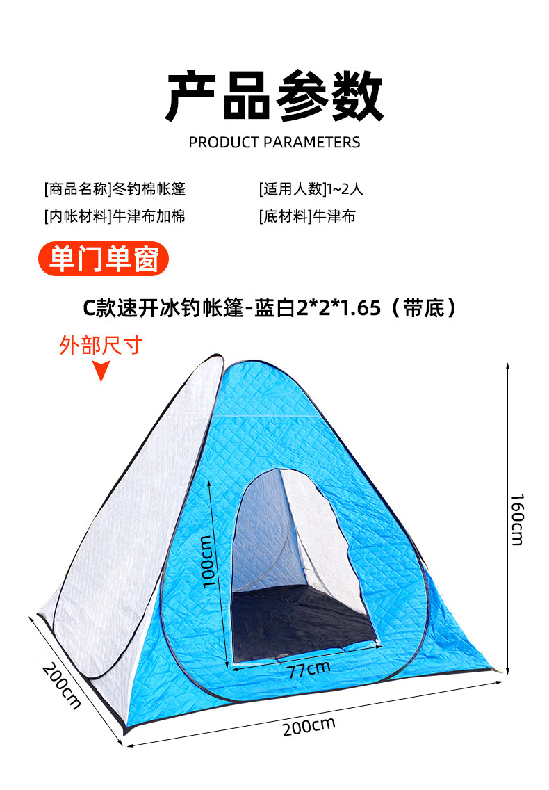 这款帐篷保暖性很好,防风效果也不错,在冰面上用着很安心。收纳方便,空间足够,性价比高。