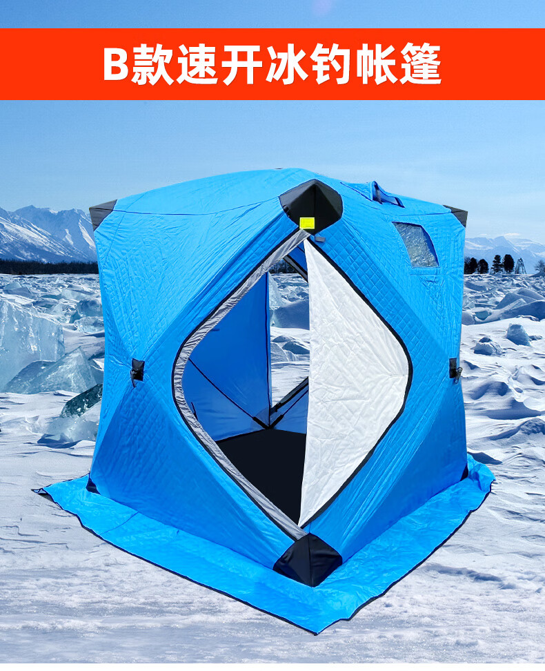 冬钓帐篷冰钓帐篷户外钓鱼屋加厚加棉冬季保暖防寒防风装备 蓝色冰钓帐篷B款(带底)