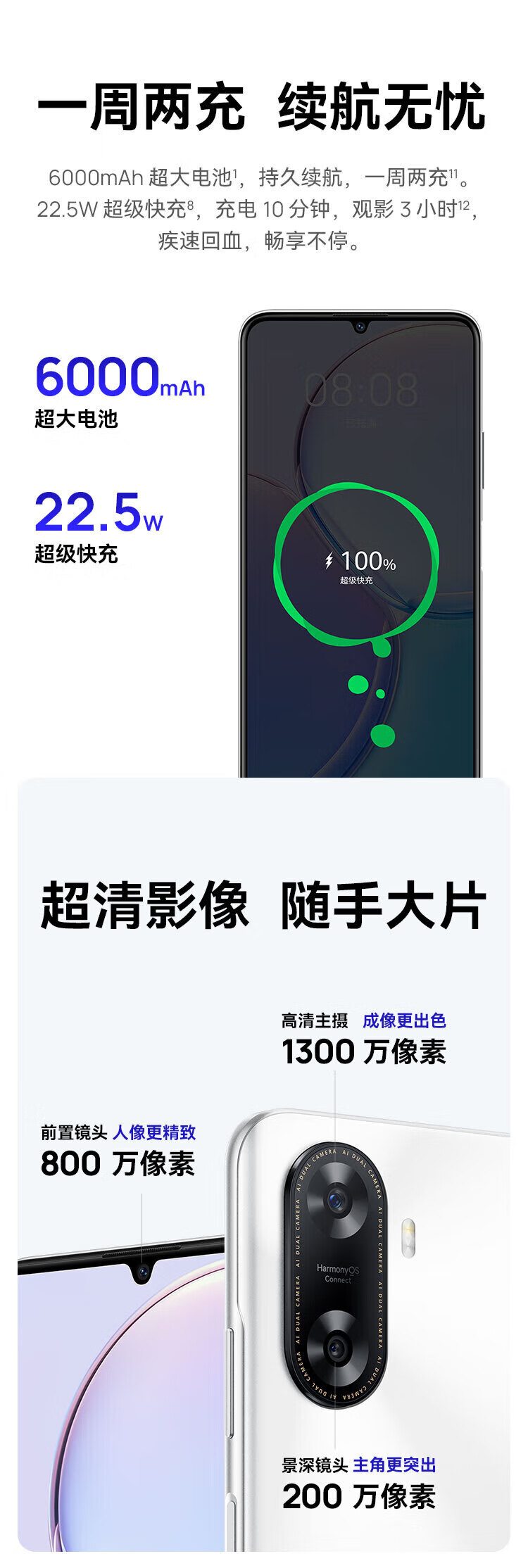 Hi novaHi nova华为智选Hi 畅享60s 5G手机6000mAh超长续航鸿蒙生态安全守护全网通 幻夜黑 128GB 星河蓝 8+128