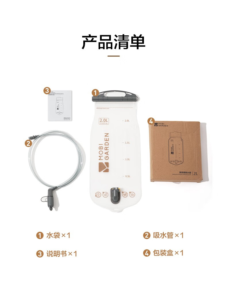 水袋很轻,也没有异味,吸管质感很好,各种接口的 地方也不漏水。背着去徒步了几次,特别好用,比带 瓶装水方便多了,这个大小也合适。正好够一次大半 天的徒步水袋很轻,也没有异味,吸管质感很好,各种接口的 地方也不漏水。背着去徒步了几次,特别好用,比带 瓶装水方便多了,这个大小也合适。正好够一次大半 天的徒步