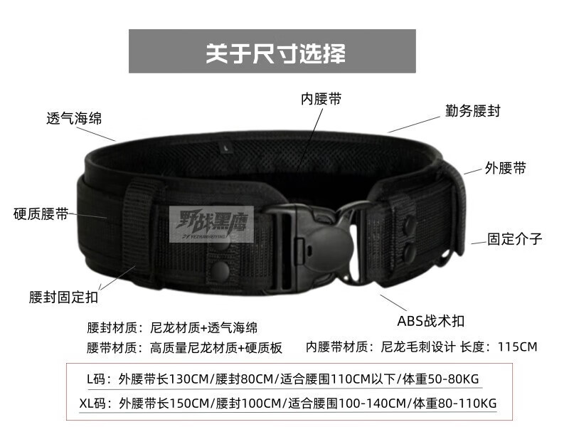 战术兵 多功能执勤战术腰带塑钢快拔套装八件套安保巡逻装备腰封 黑色