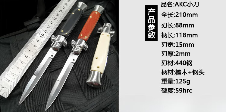 黑手党户外折叠刀野外硬度防身工具野营刀具意大利ACK水果刀9号60 白色