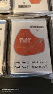 急救保温毯收到了,与宣传的一样,每个都是独立包装,方便使用收藏。尺寸,质量也符合要求,快递,包装都没问题, 急救保温毯,户外,日常出门的备用选择。可以用不上,但是不能不备。 与之前购买的比较了,质量上绝对可靠,赞一个。