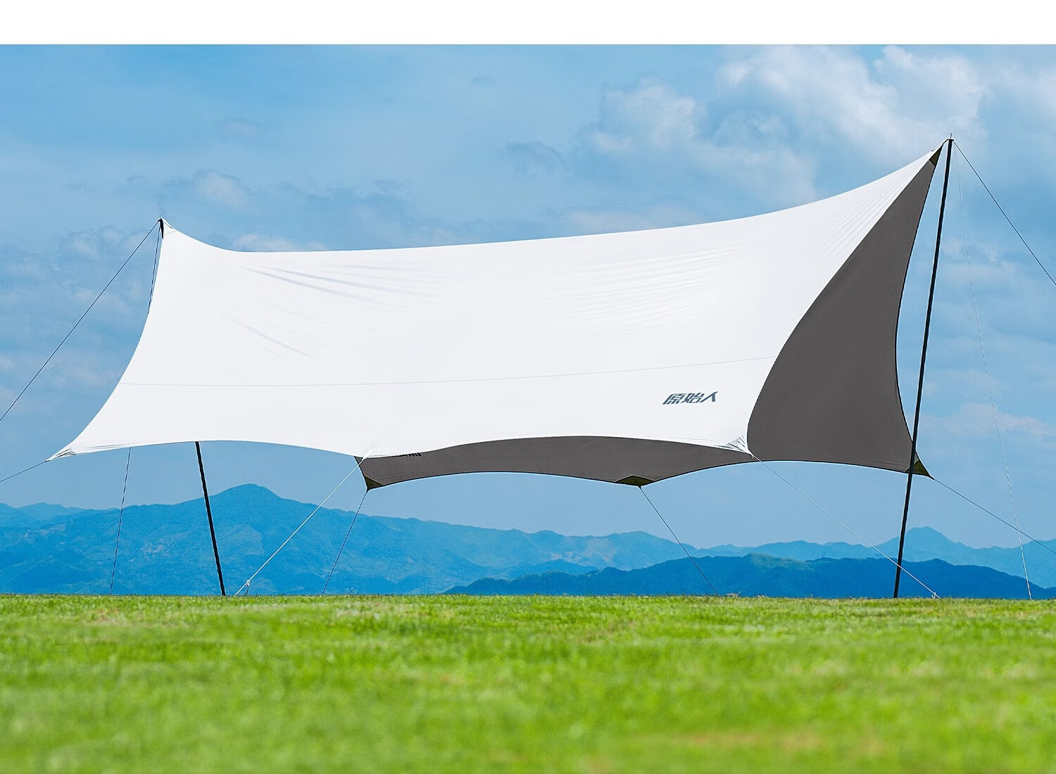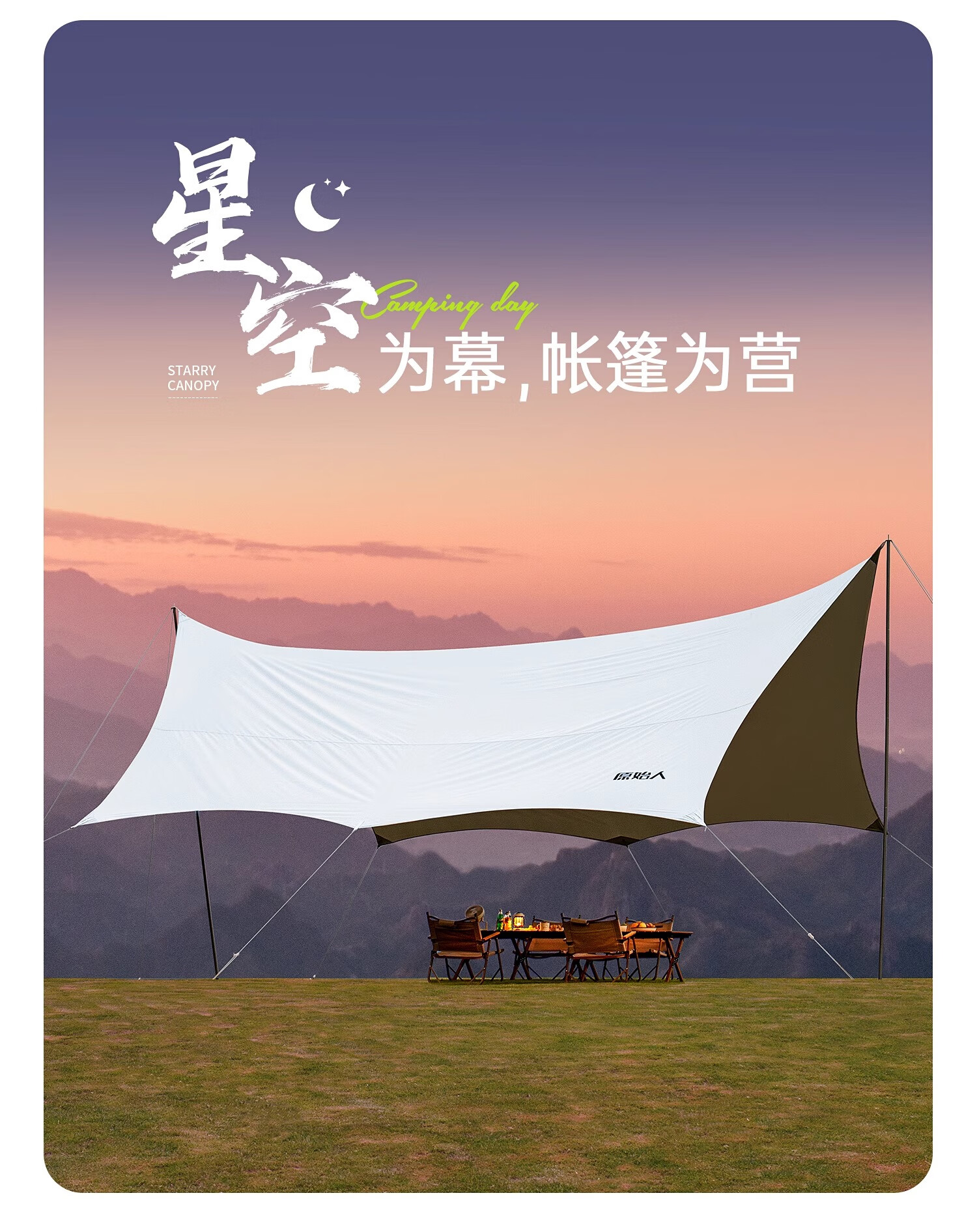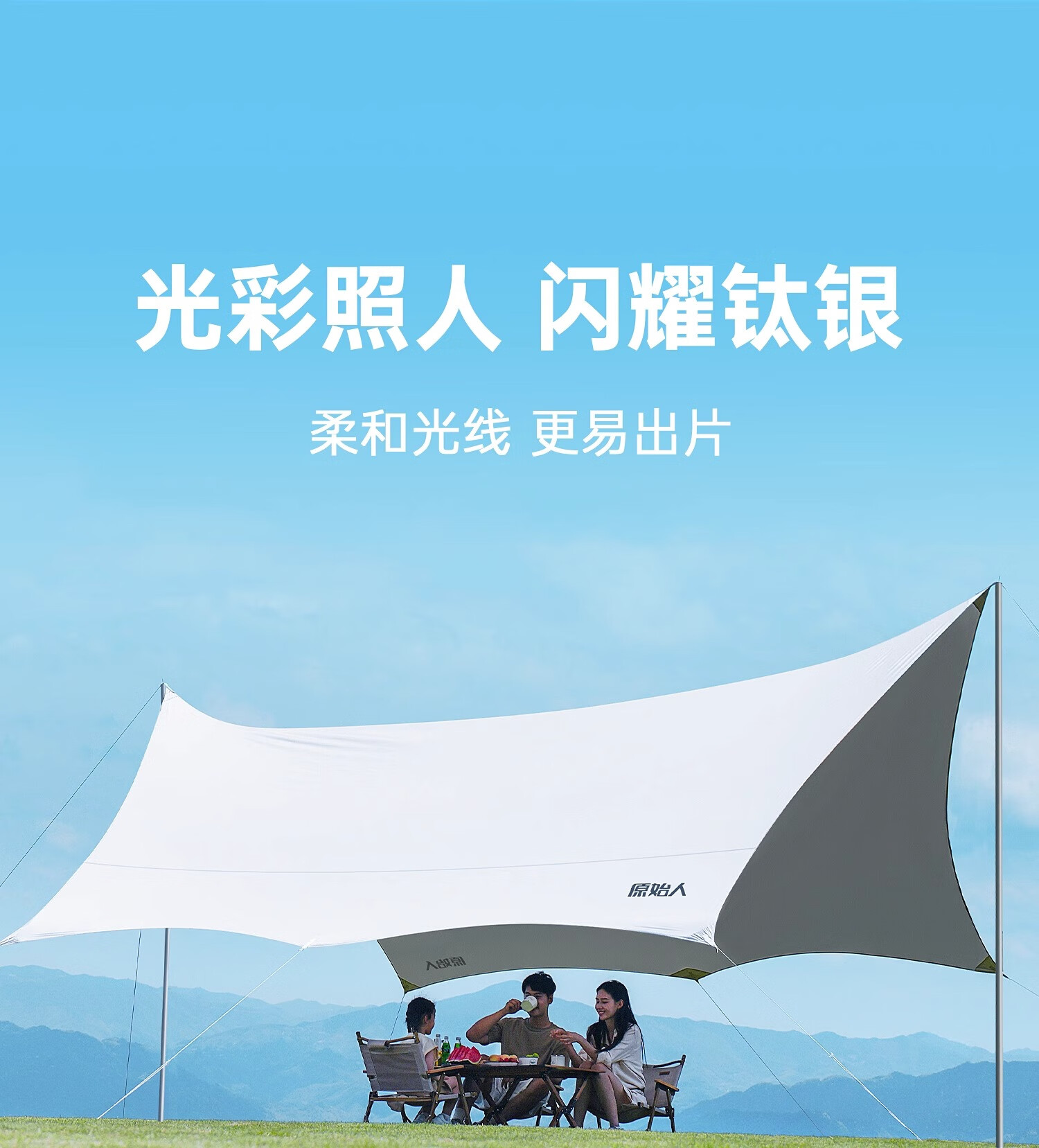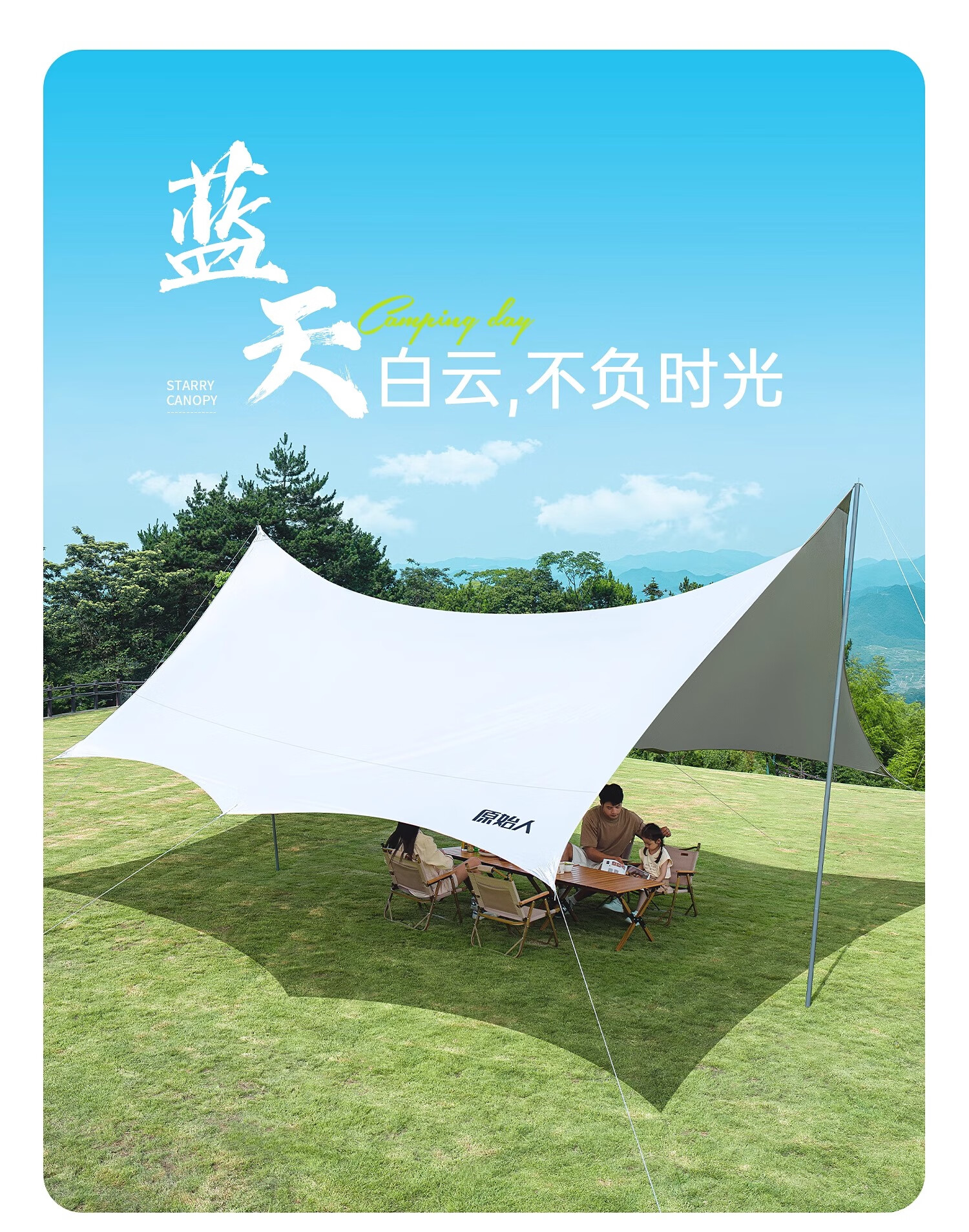 原始人天幕帐篷户外大号专业防晒银胶涂层沙滩遮阳棚露营装备 16㎡轻便出行白色套装