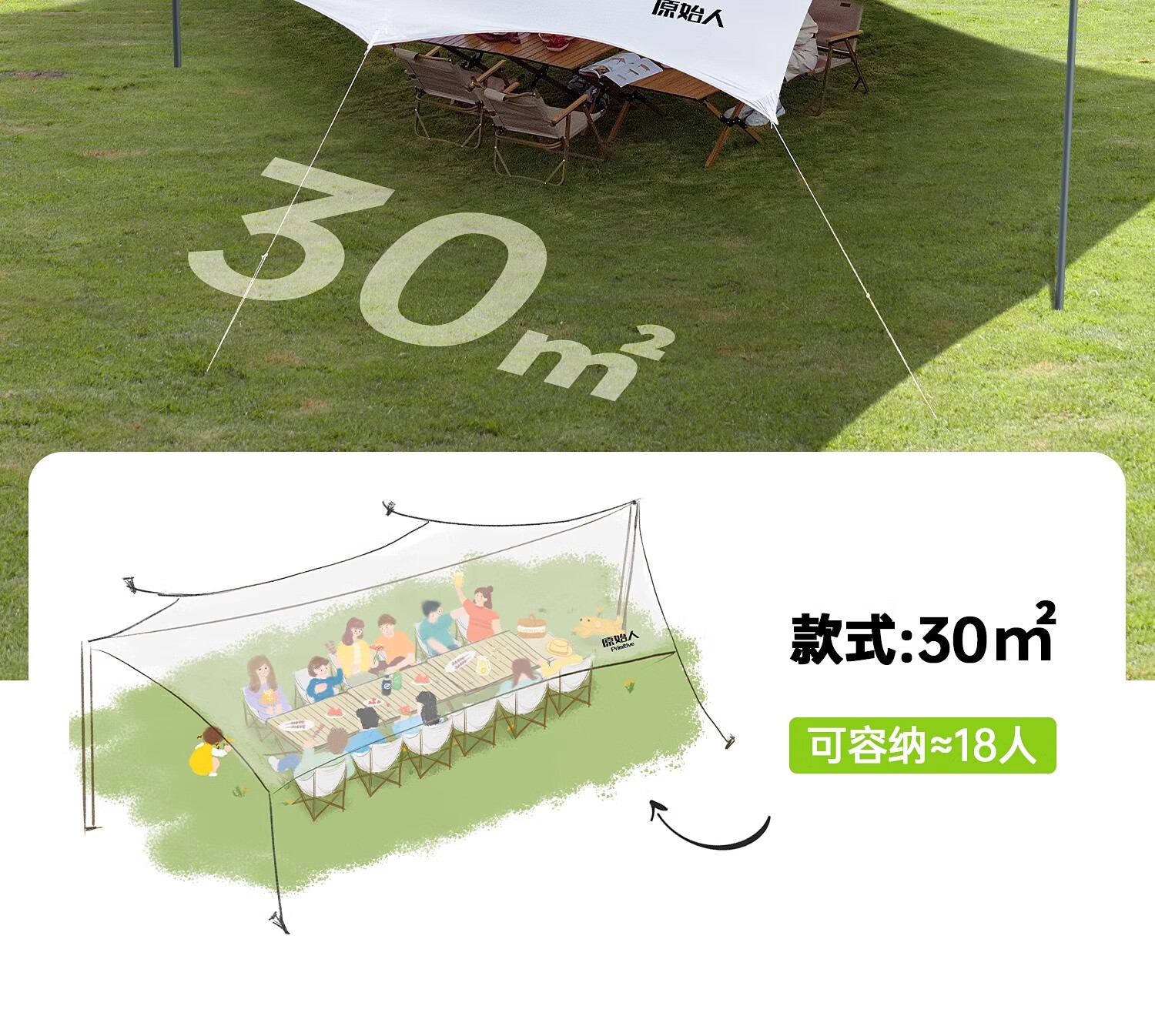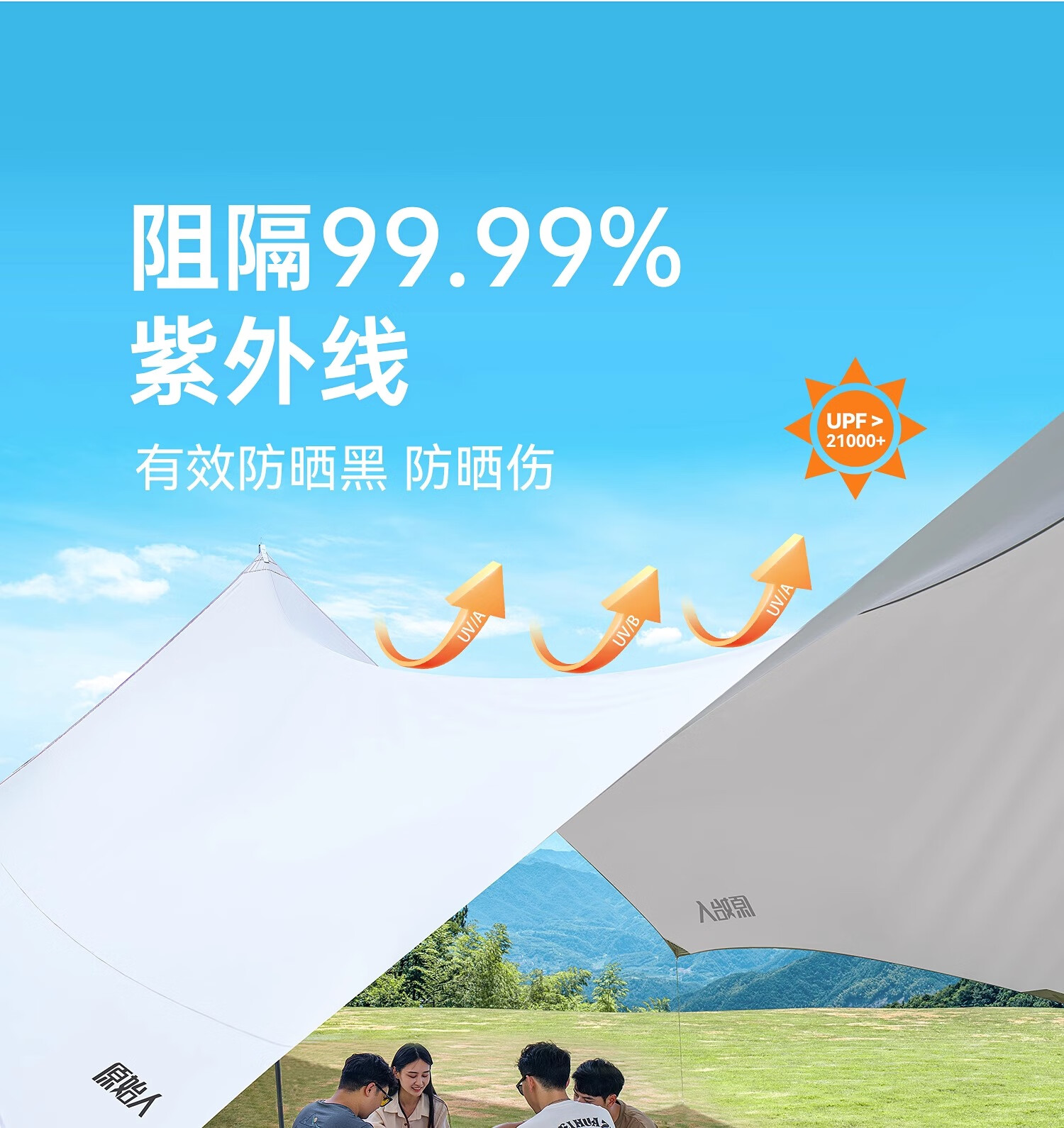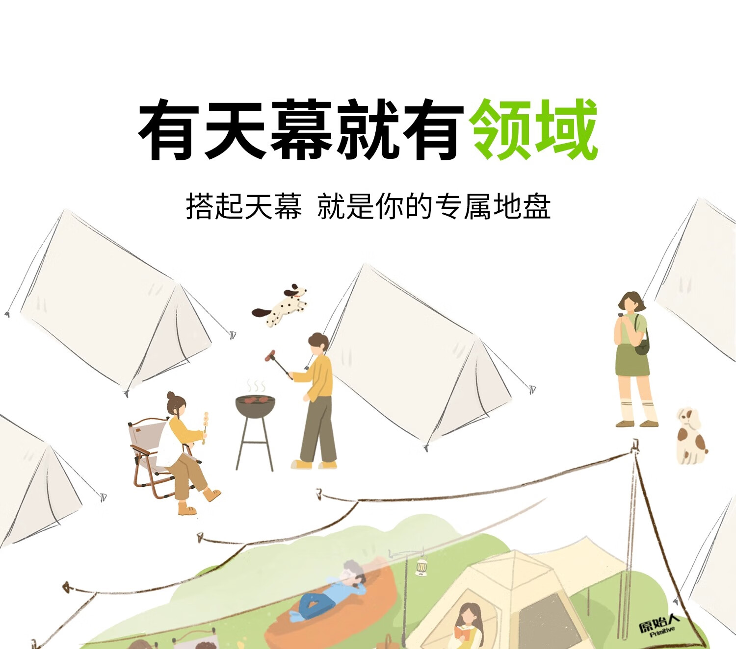 原始人天幕帐篷户外大号专业防晒银胶涂层沙滩遮阳棚露营装备 16㎡轻便出行白色套装