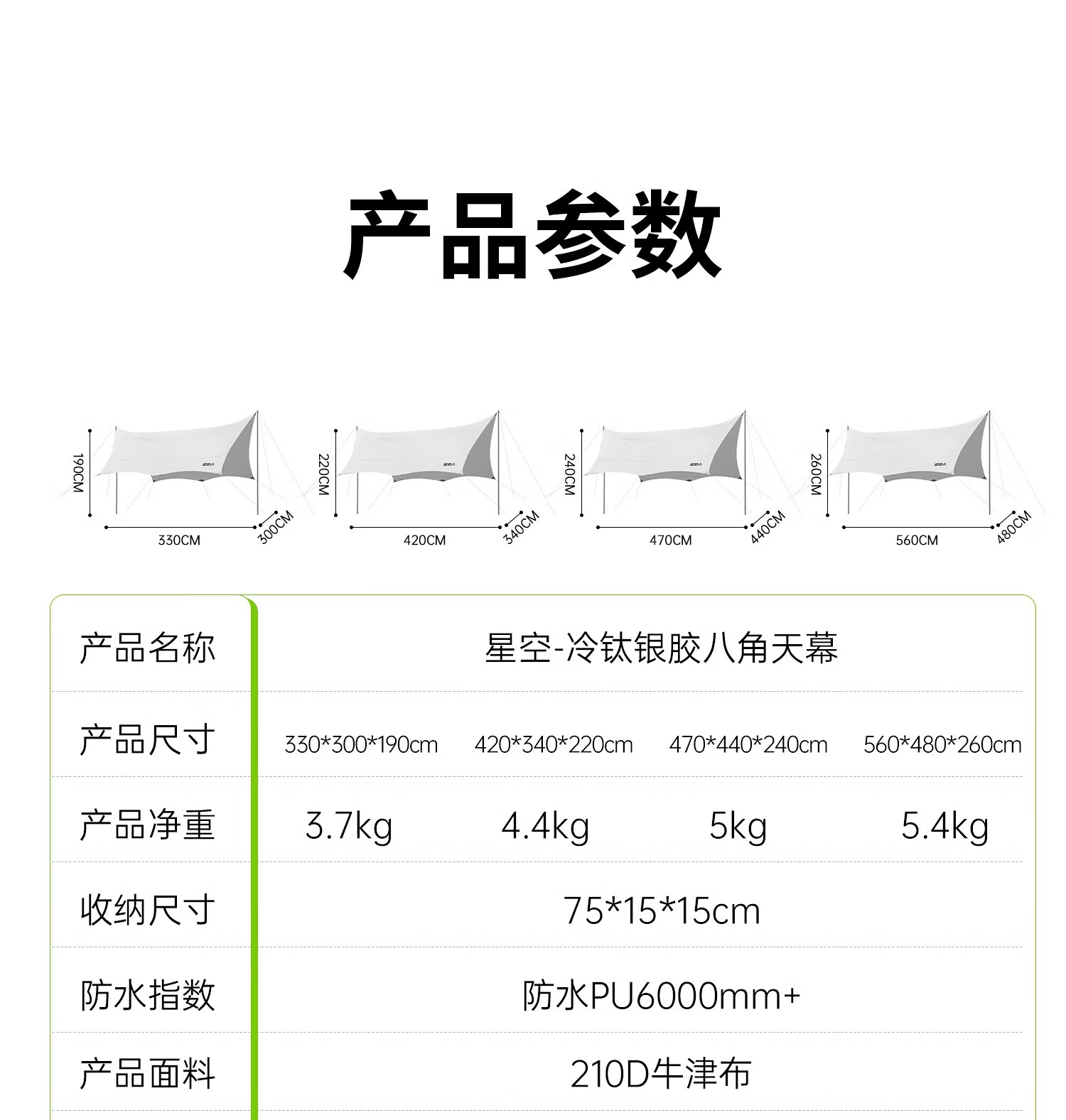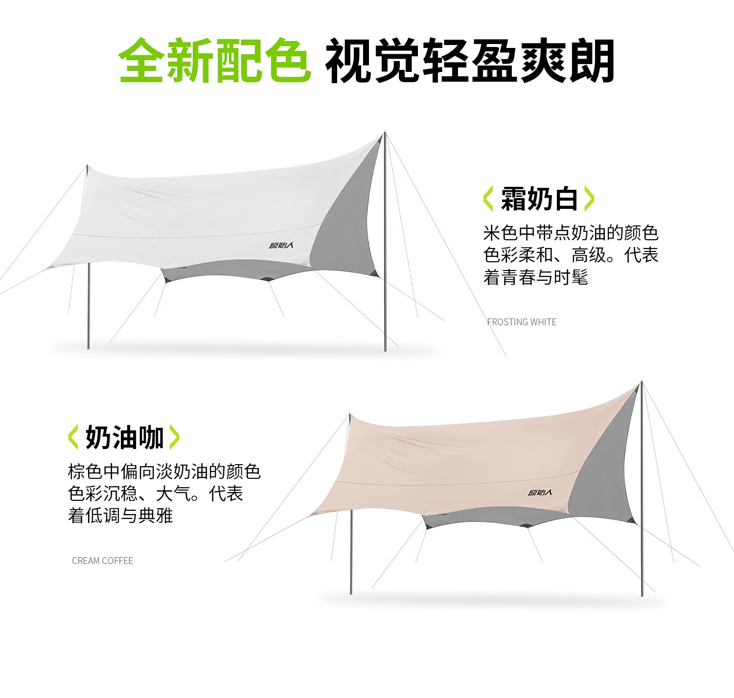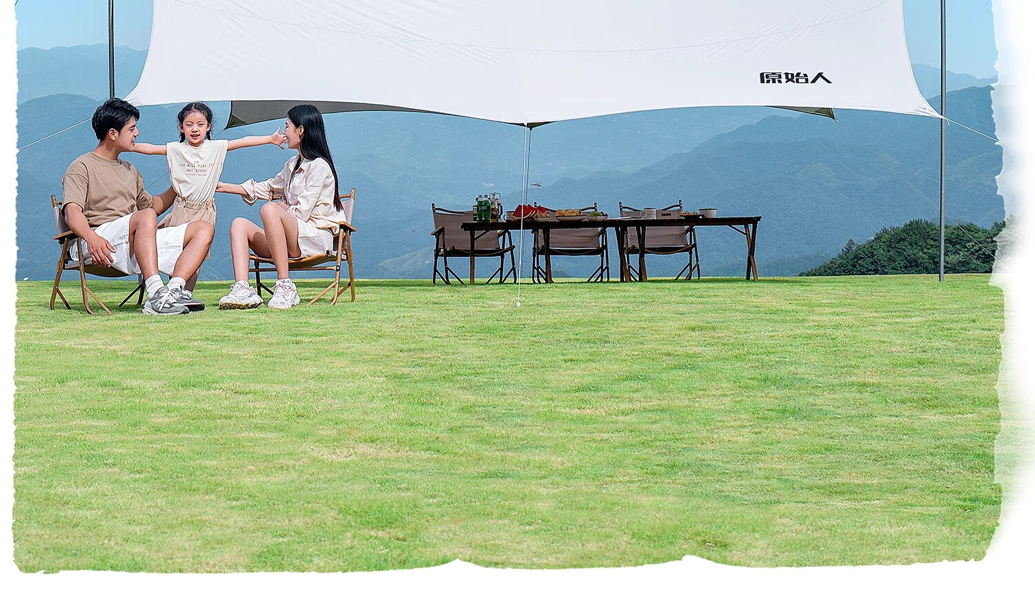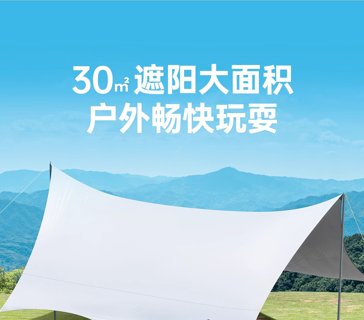 原始人天幕帐篷户外大号专业防晒银胶涂层沙滩遮阳棚露营装备 16㎡轻便出行白色套装