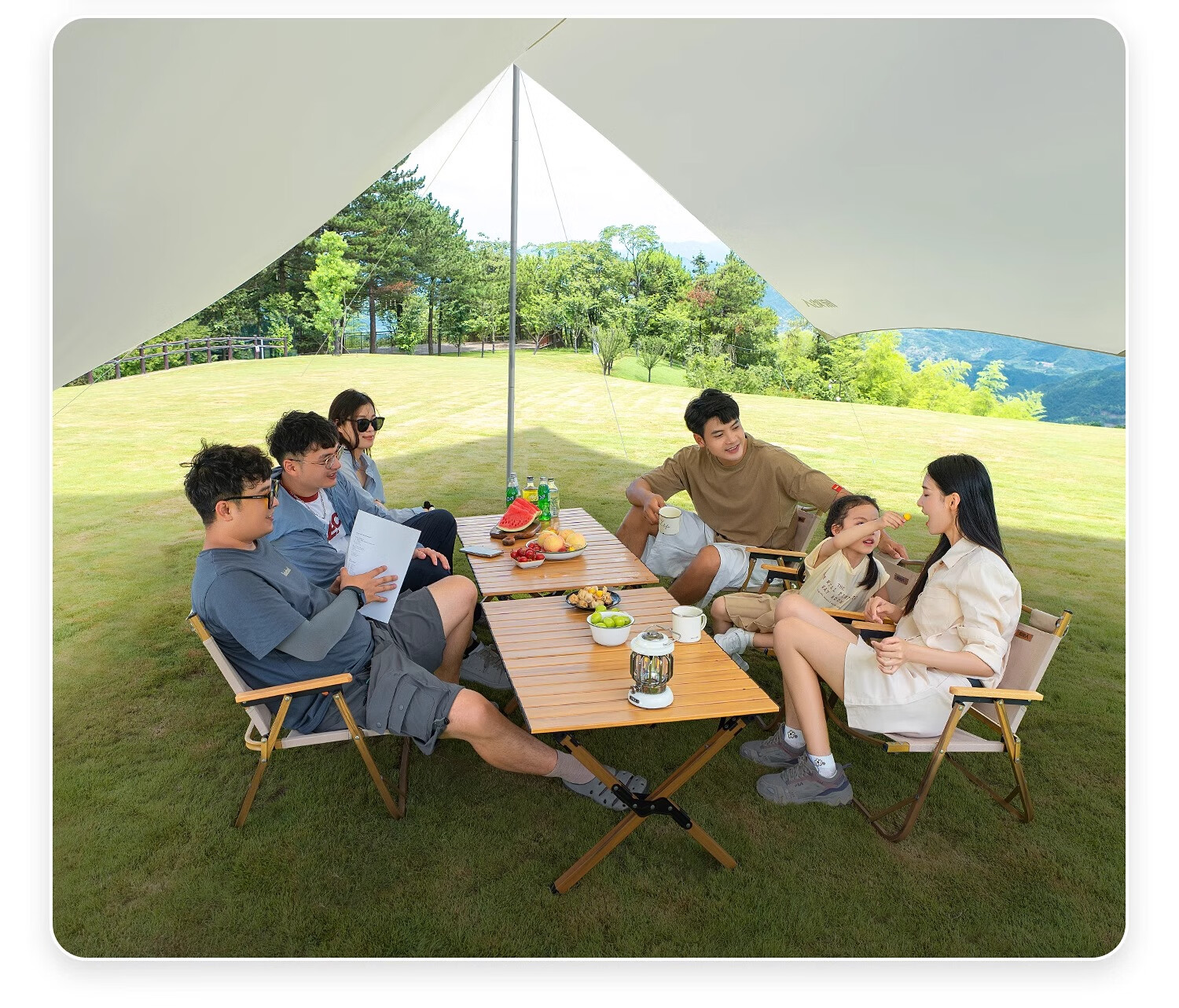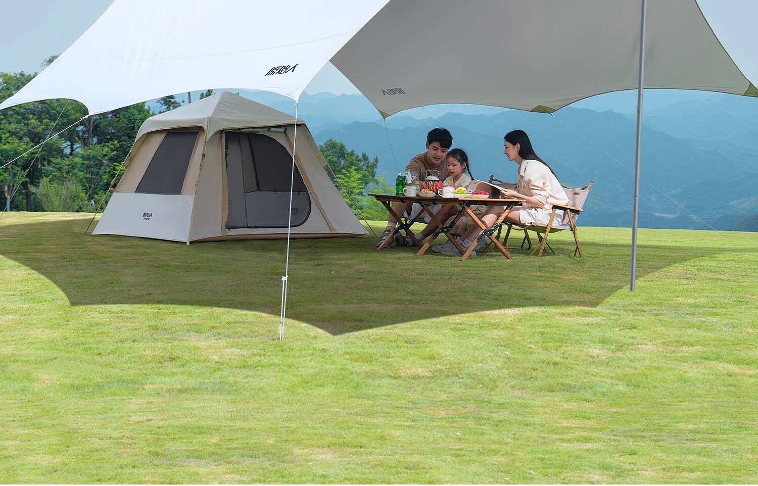 适用场景:夏季户外必备 展开类型:展开方便 便携性能:便携易收纳 防水效果:防水效果很好 容纳人数:适合4至8人野餐 质量很好,钢管管壁厚实,桌子很稳,折叠凳子质量很好,地钉很结实,之前也使用过朋友购买的其他其他品牌,对比下来非常满意,非常好的一次购物体验!