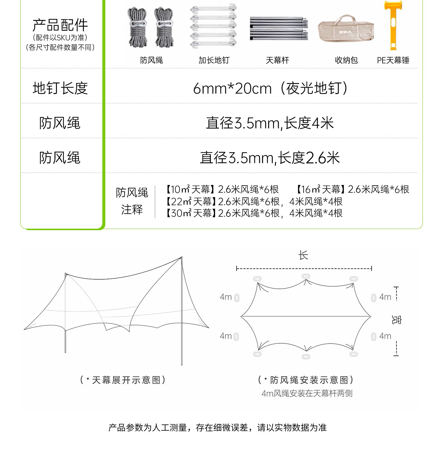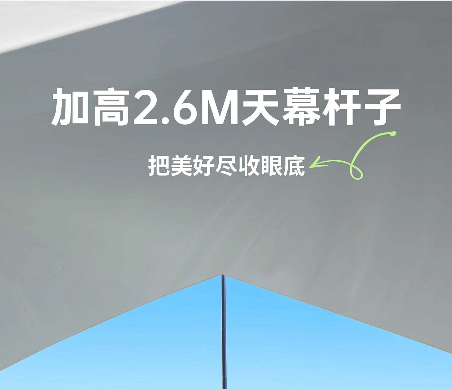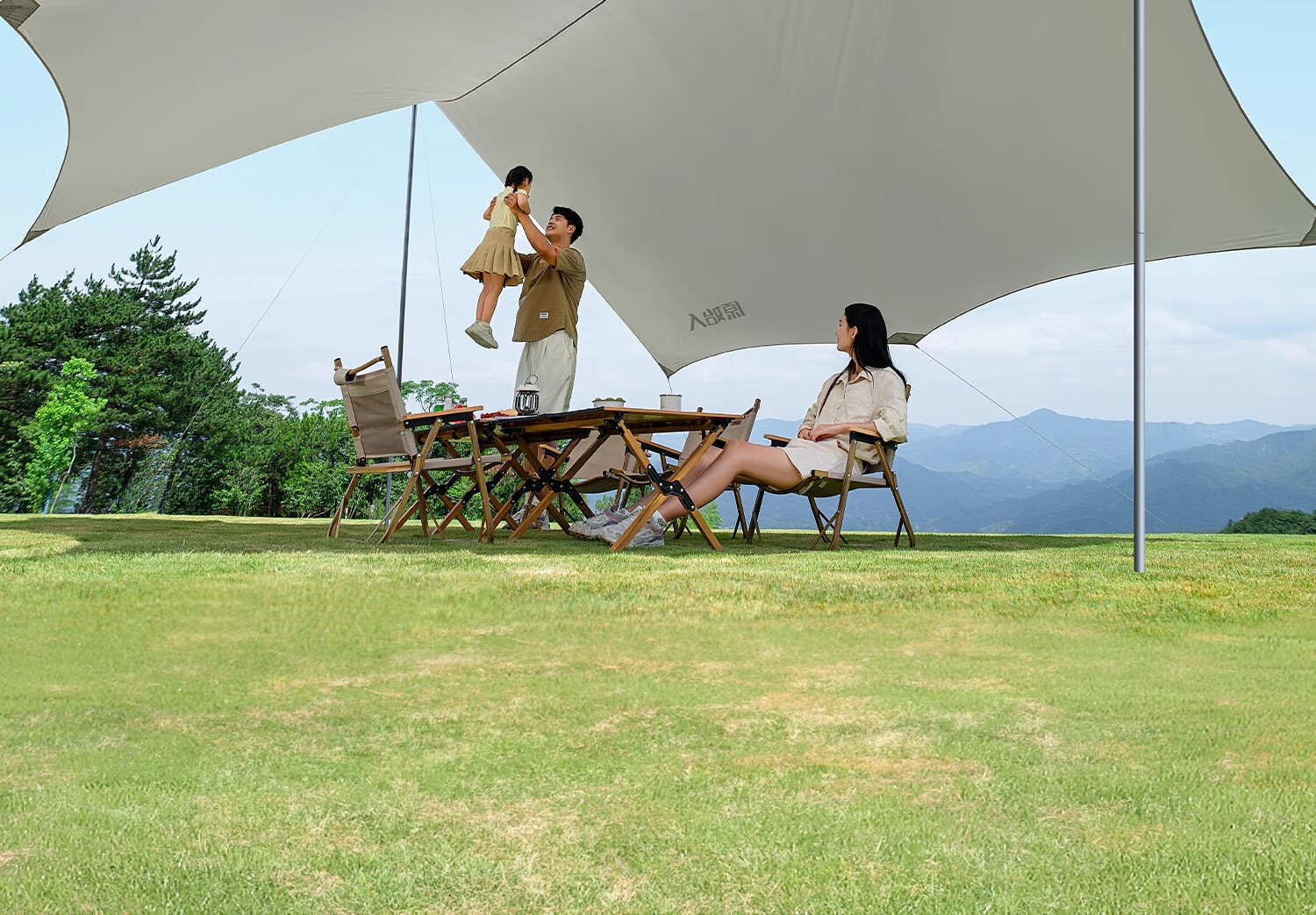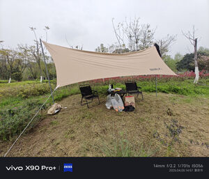 防水效果:还没验证,没下雨 适用场景:户外露营⛺️ 容纳人数:3-6人没有问题 透气效果:四面通透,没问题 展开类型:飞机翼的效果 便携性能:方便携带,就是杆子有点重 价格便宜,做工OK,除开杆子的重量没啥缺点。公园露营⛺️,烧烤🍗都很棒棒。地钉安装方便,易取和固定,6跟绳做工ok,颜色明显,便于识别不会误触。