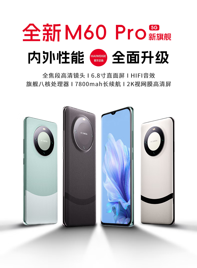 HAIWEIGE手机2025新款上市M60Pro旗舰搭配16G运行1TB 120Hz高刷7800mAh长续航大电池游戏5G全网通双卡双待 月影白 旗舰版:12G+1024G