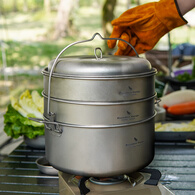 必唯(BOUNDLESS VOYAGE) 纯钛户外蒸锅4.5L便携汤锅露营锅具野营平底锅火锅大容量蒸隔 4.5L汤锅+2节蒸隔