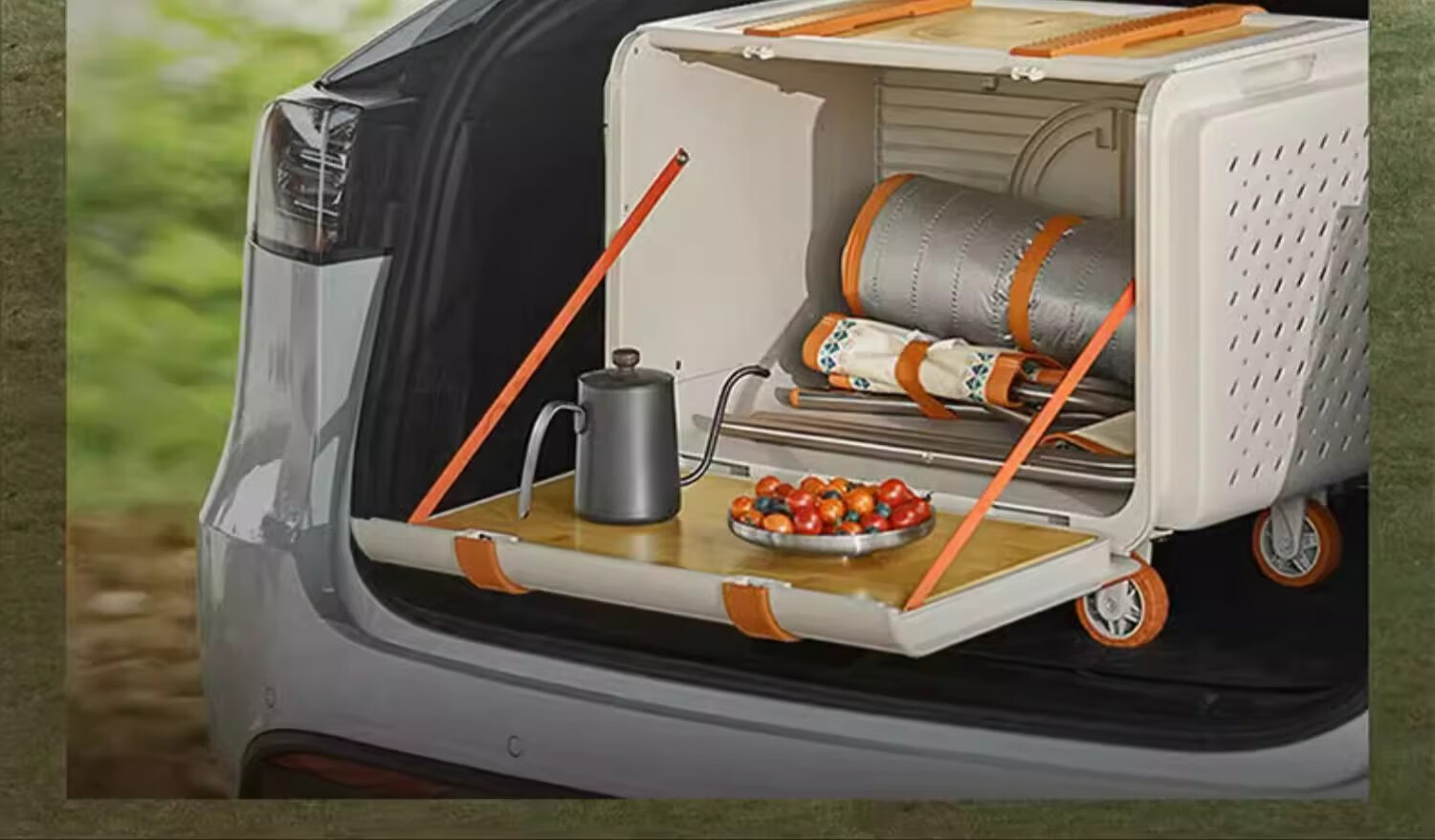 箱子还是有点大,等天气好了就可以出去轻露营了,一箱搞定,方便收纳,颜值很高,非常满意