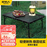 原始人户外折叠桌铝合金露营野餐网格桌烧烤小桌子超轻便携泡茶桌 【超轻便携 高度可调】折叠桌