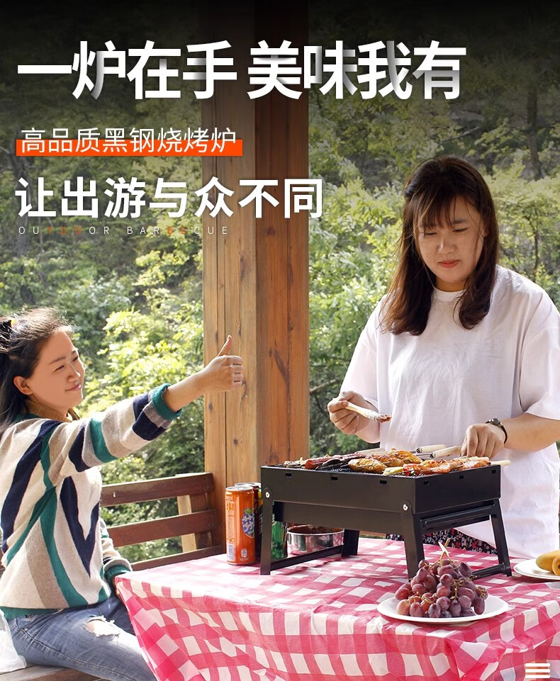 这款烧烤炉真的太方便了,折叠后小巧轻便,出门野餐带着一点都不占地方。组装简单,火候均匀,烤出来的食物特别香。清洁也很容易,用完一擦就干净。性价比高!