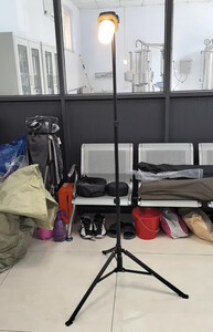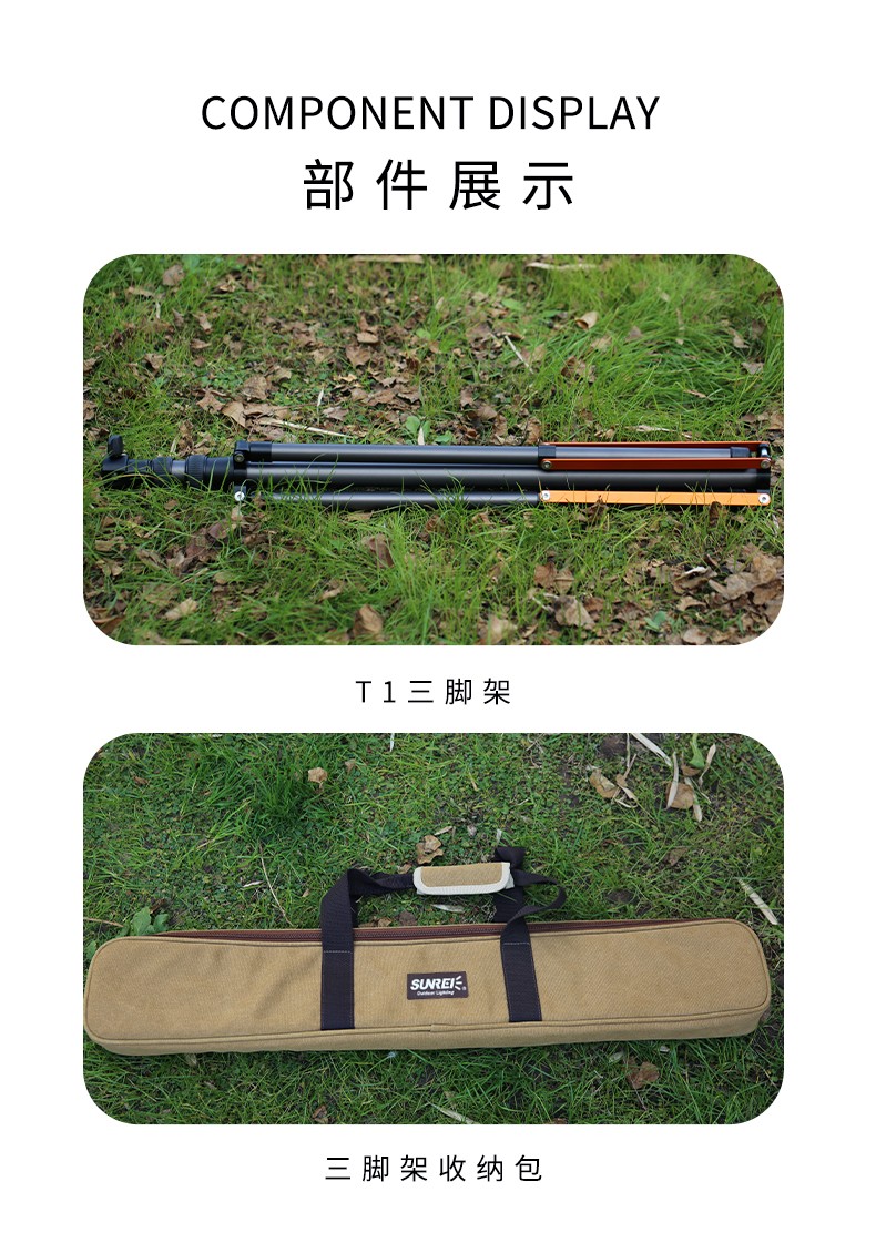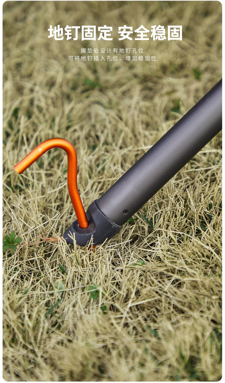 灯架如图所示,与店家说的相同,适用户外露营,有地钉孔很人性化。在野外防止被风吹落地上。对该灯架非常满意。