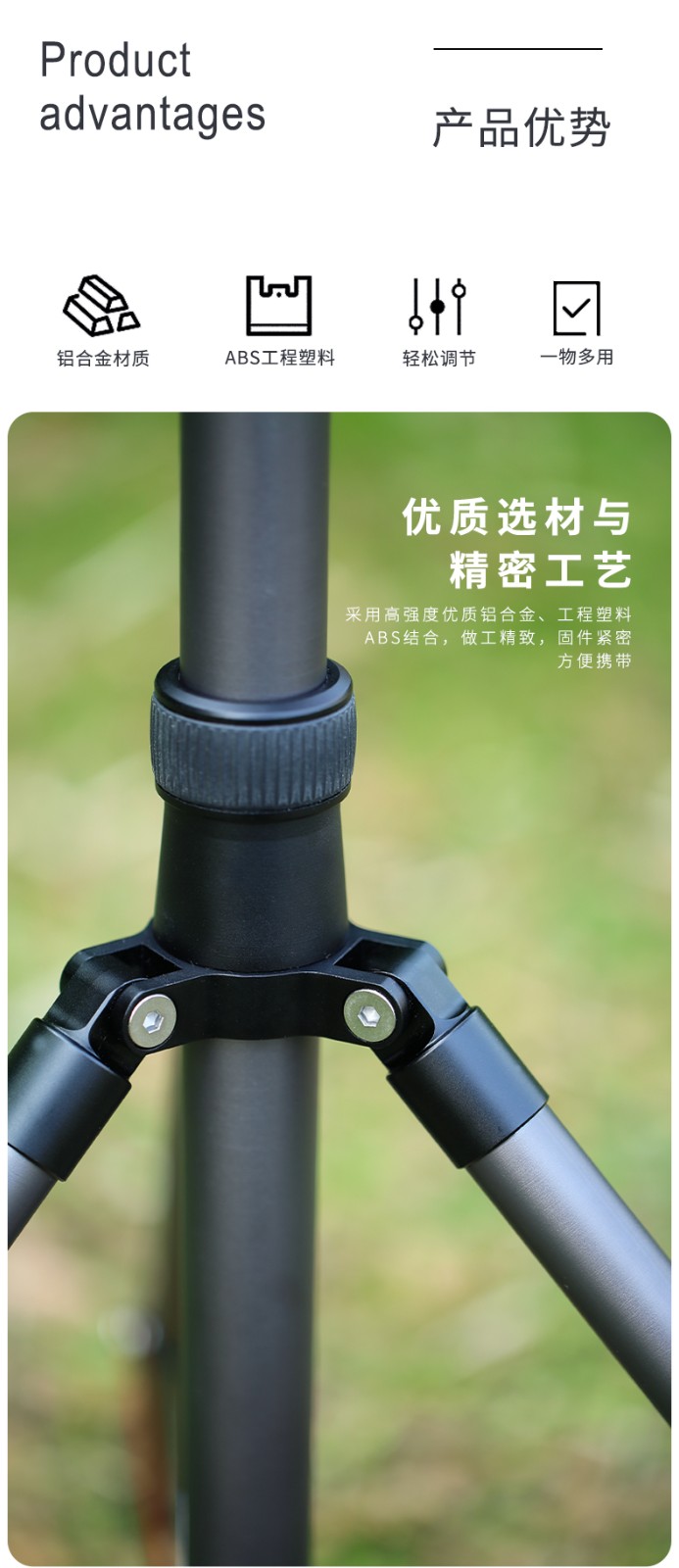 山力士多功能铝合金全地形三脚架便携旅行露营单反照相机三脚架 亚克力圆桌板
