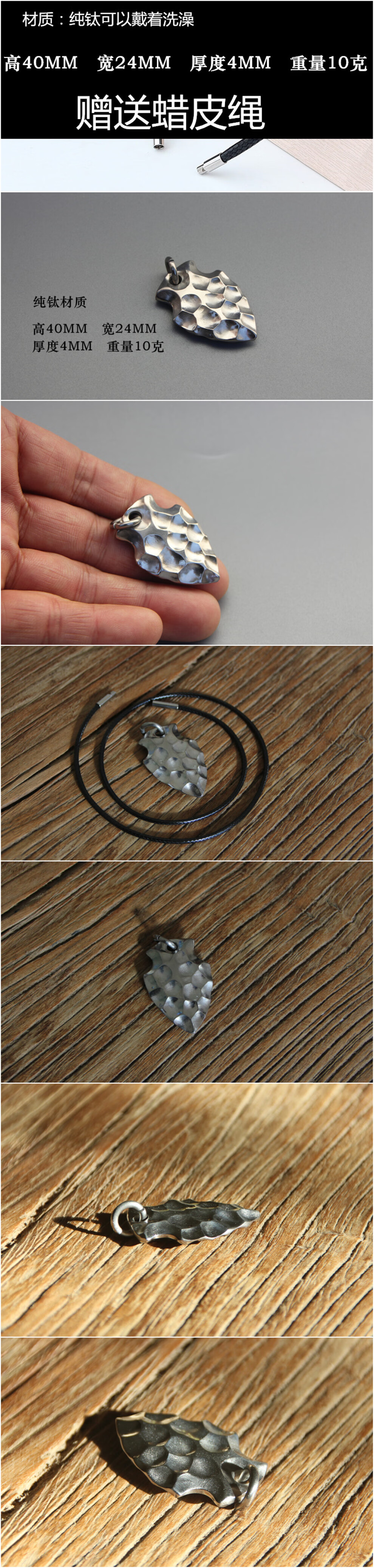 战术虎纯钛实心吊坠箭头吊坠纯手工项链简约男士tc4钛合金个性吊坠陨石做旧户外配饰