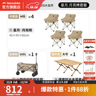 挪客户外折叠椅速开露营月亮椅子野餐便携沙滩钓鱼椅凳子懒人装备 【4人桌椅推车】大款卡其*4
