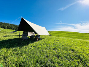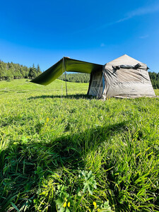 关注这个品牌很久了,在众多帐篷里面,最终选了挪客的八角大号天幕。和预想的差不多,我们六个人坐在里面空荡荡的非常舒适。这个高度也非常棒,遮阳一级牛逼!刚开始搭建的时候,朋友就说这个天幕很好,摸起来非常的厚实,而且铝干是四接的很有质感!