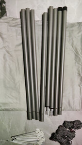 打开看了一下,做工很好,钛黑胶,隔热好,期待出去露营打开的效果!信任挪客的品质,天幕杆相当粗壮,铝制的比较