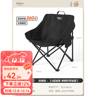 原始人月亮椅户外折叠椅露营椅子桌椅沙滩椅便携躺椅野餐钓鱼椅凳 经典款典雅黑【加大底座】