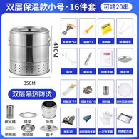 家用无烟烧烤炉户外烧烤架便捷炉子木炭吊炉不锈钢焖烤室内烤肉串 双层隔热棉款20串+16件套礼包