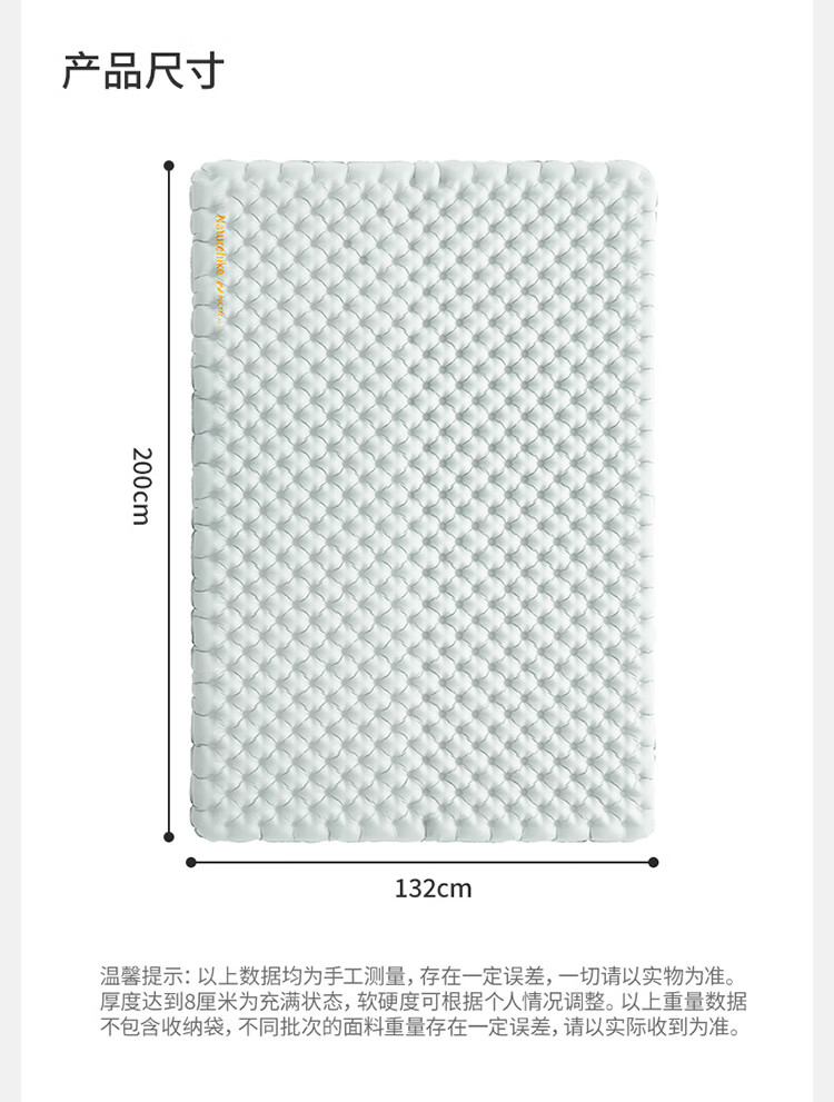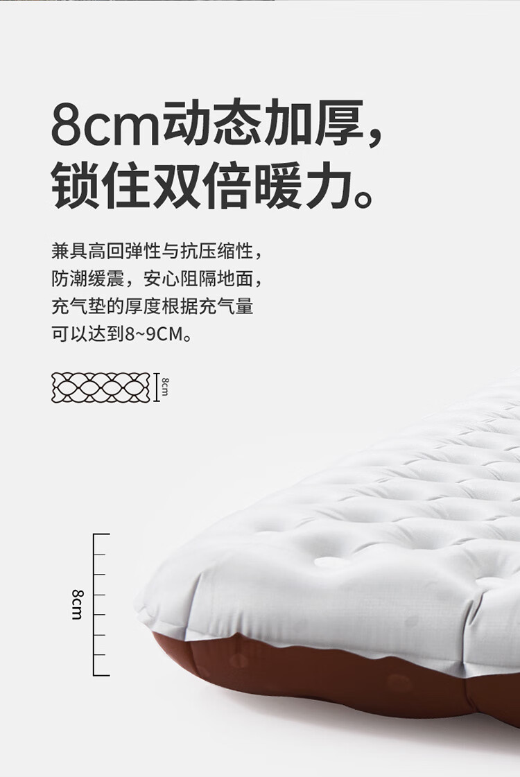 真正物有所值的商品,在2300多米海拔的山顶露营,气温零下五度,背部没有感到一丝凉意,购买之前,有担心漏气,整个晚上,没有一点漏气,送了电动充气泵,好东西,值得购买。