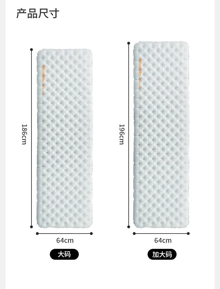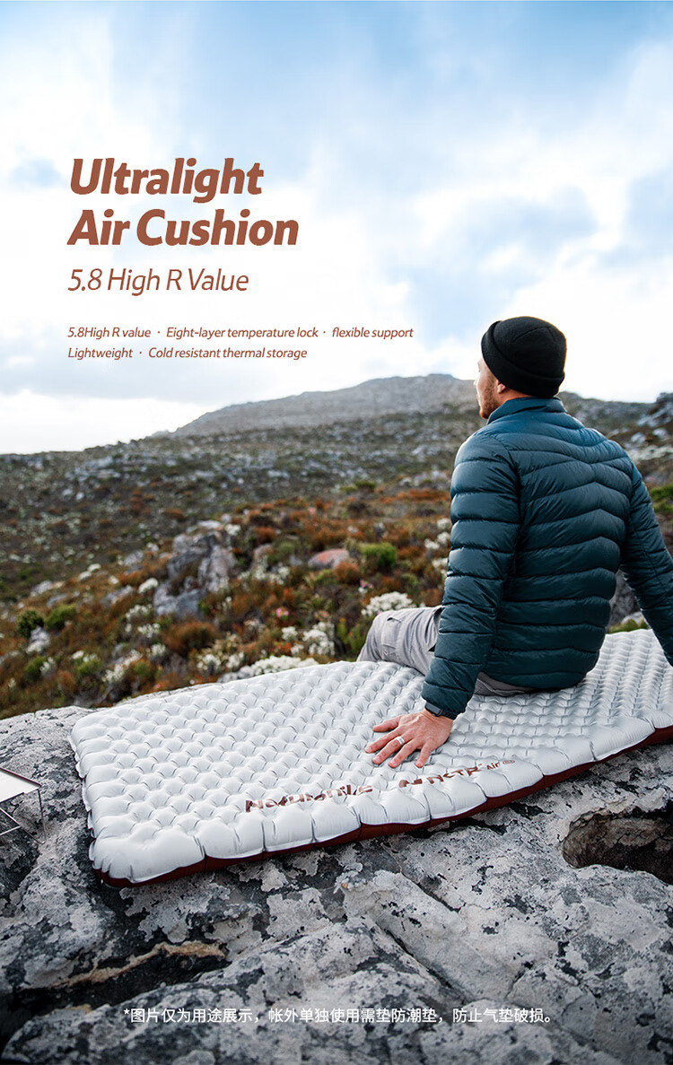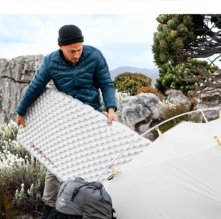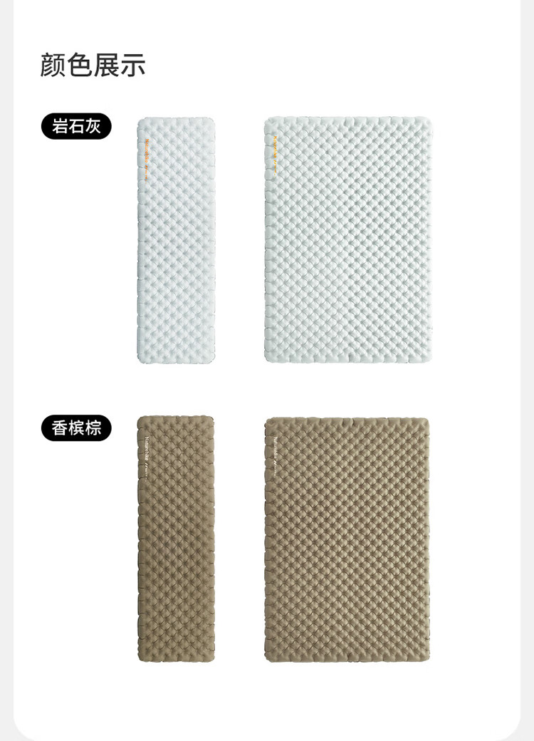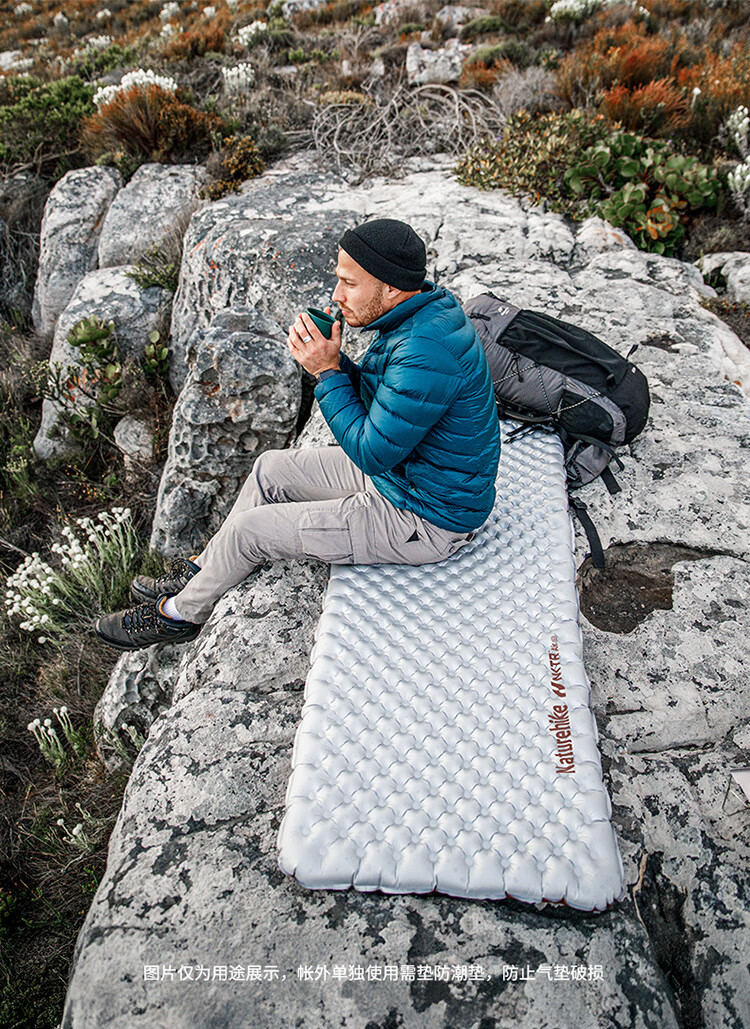 Naturehike挪客徒野高r值防潮垫超轻充气垫户外露营地垫便携睡垫打地铺 岩石灰186*64cm/赠充气袋-R值3.2
